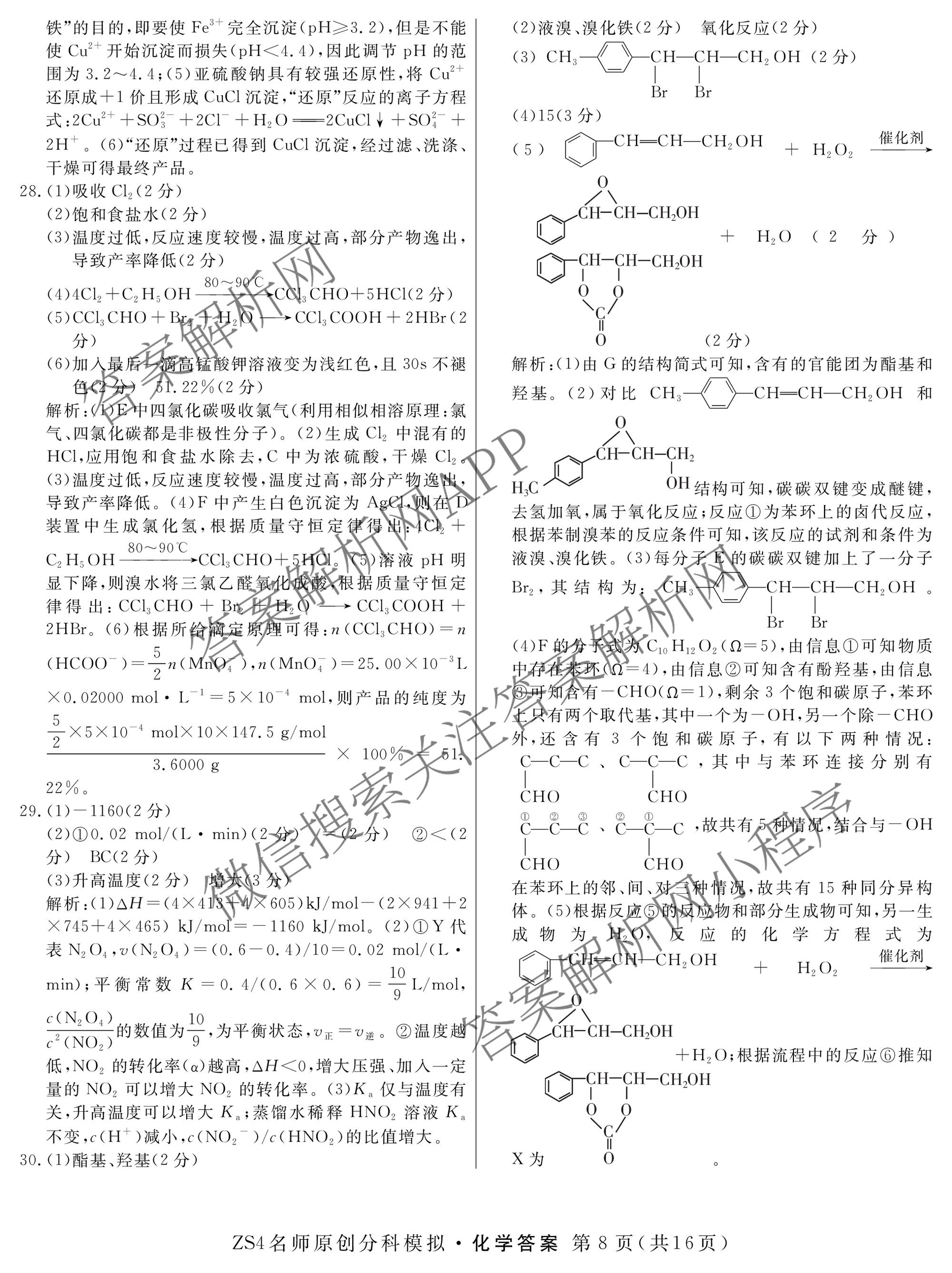 - 2024届[高三]总复习名师原创分科模拟 化学(S4)(三)3答案