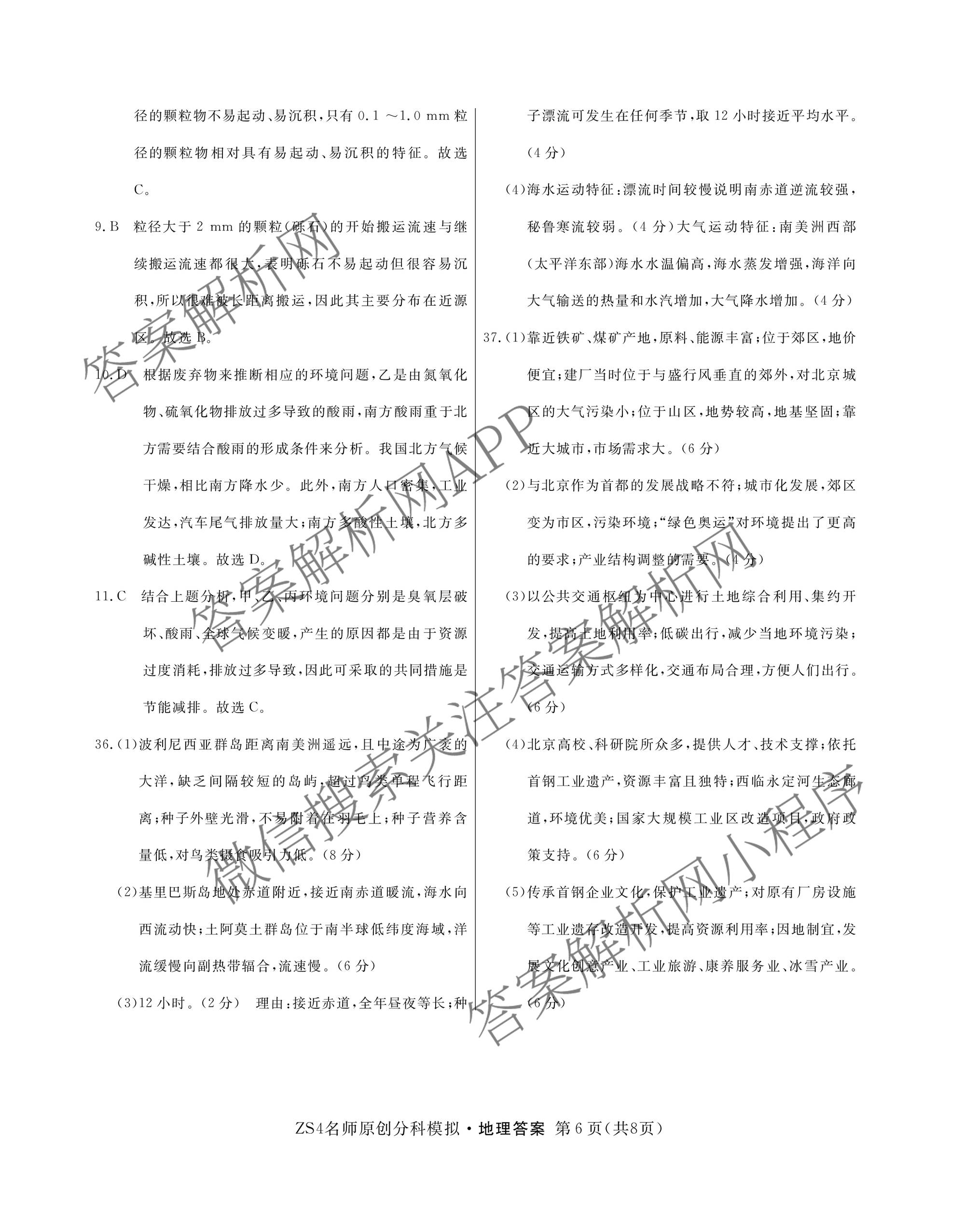 - 2024届[高三]总复习·名师原创分科模拟 地理(ZS4)(五)5答案