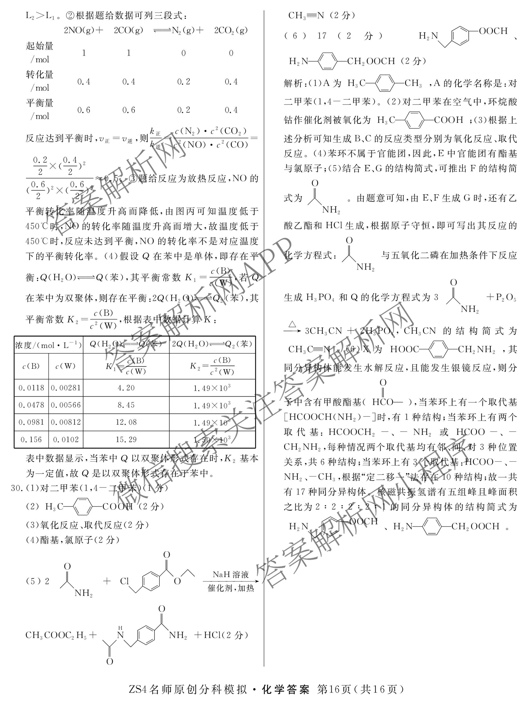 2024届(高三)总复习名师原创分科模拟 化学(ZS4)(六)6答案