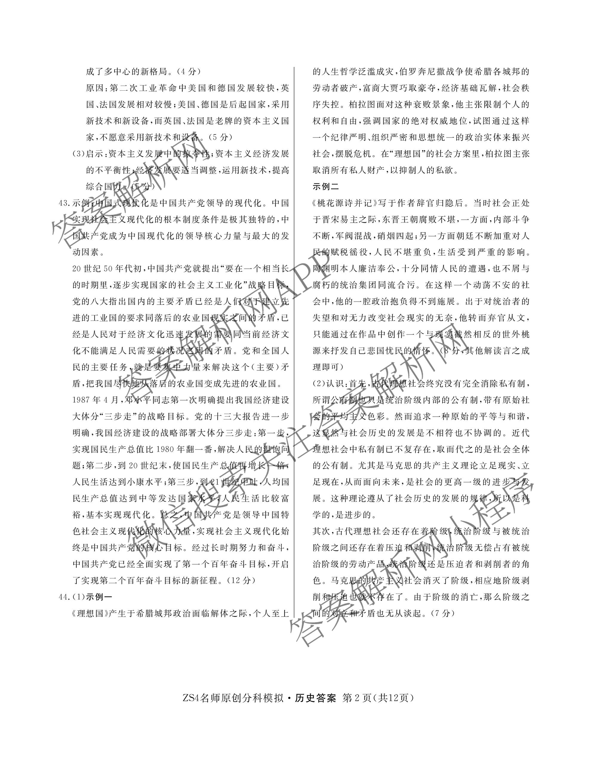 - 2024届[高三]总复习·名师原创分科模拟 历史(ZS4)(七)7答案