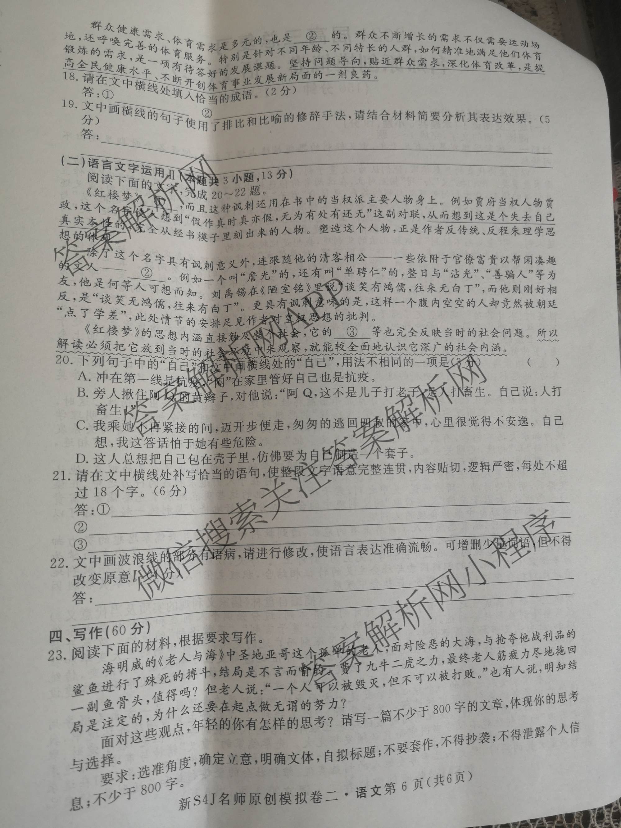 2024届高三总复习·名师原创模拟 语文(新S4J)(二)2试题,目前分科卷答案网已经汇总了2024届高三总复习·名师原创模拟 语文(新S4J)(二)2试题的各科答案和试卷,获取更多高三总复习·名师原创模拟答案解析,请在关注本站。