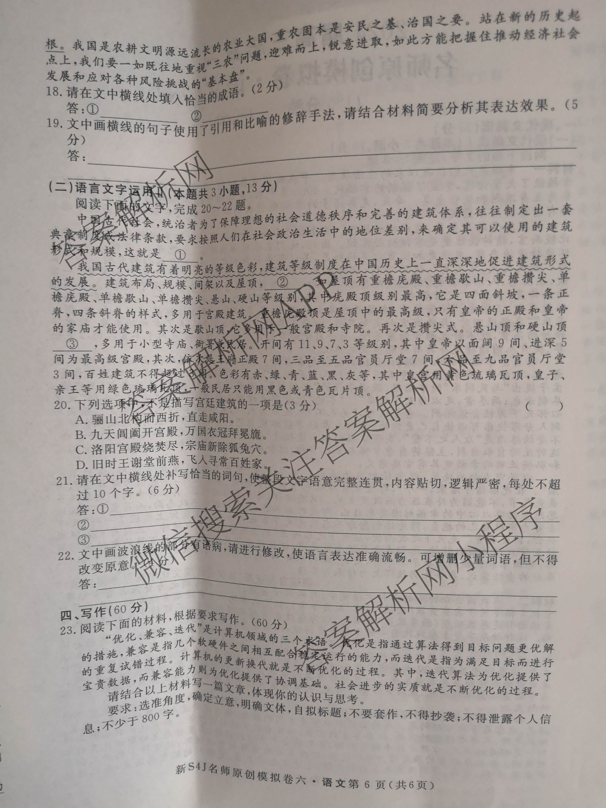 - 2024届[[高三]总复习名师原创模拟] 语文(S4G)(六)6试题