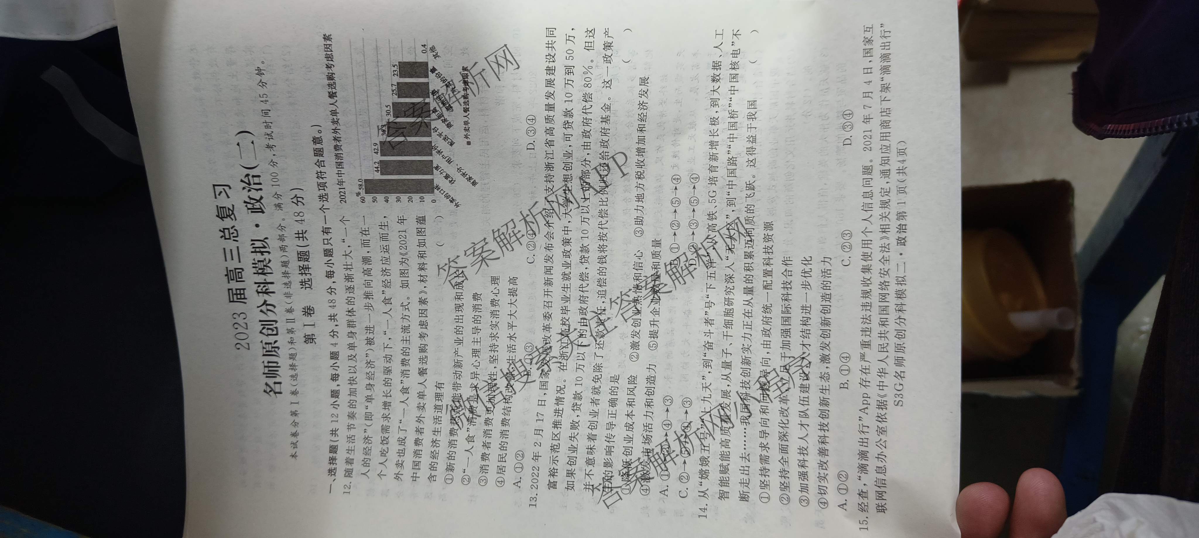 - [高三]2023届总复习·新S3G名师原创模拟政治(二)2答案