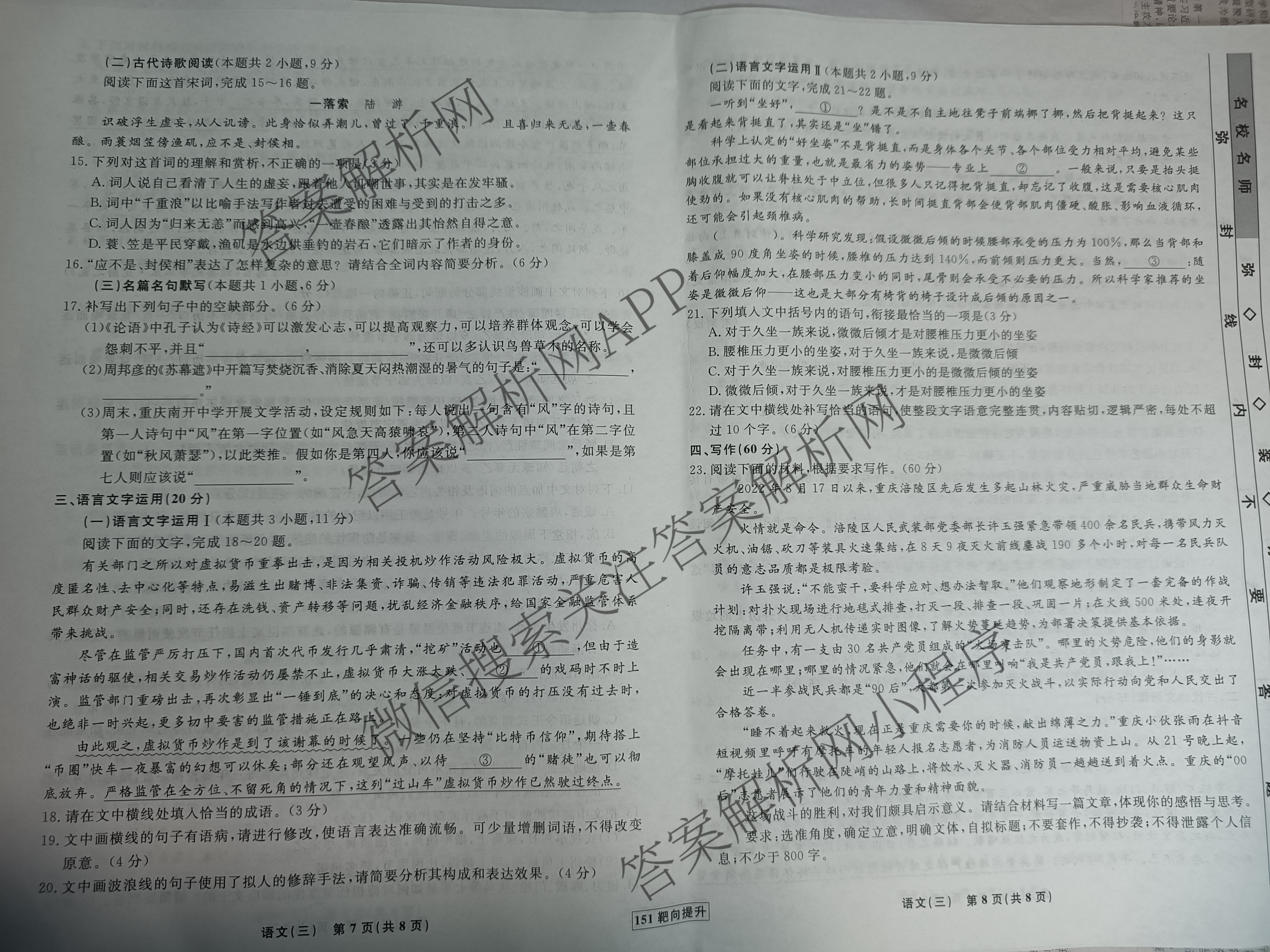 - 2022~2023(高三)衡水名师卷·学年度分科检测提分卷·151靶向提升(老高考)语文(三)3试题