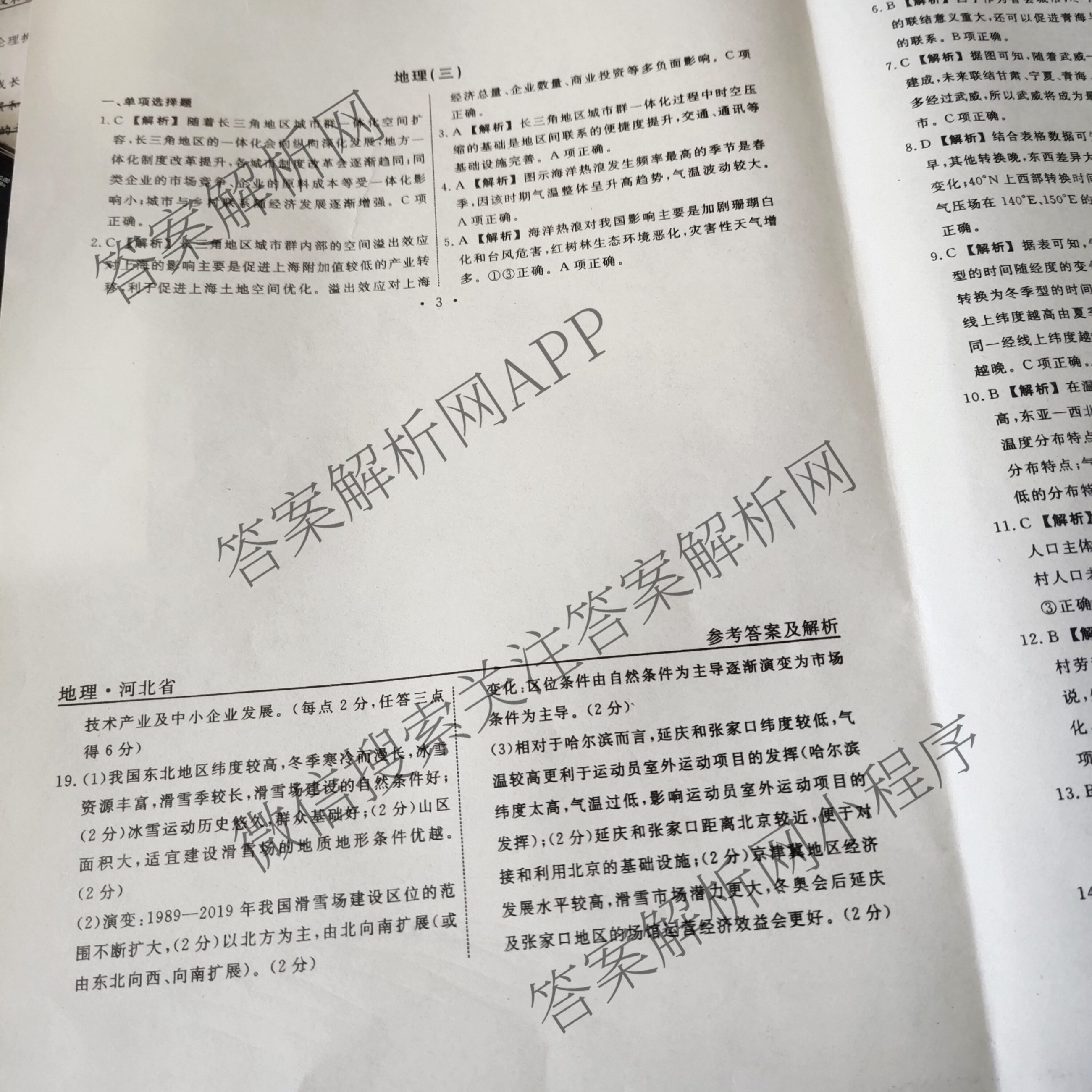 - (高三)衡水名师卷2023年河北省普通高中学业水平选择性考试模拟 高考模拟压轴卷(三)3地理(河北)答案