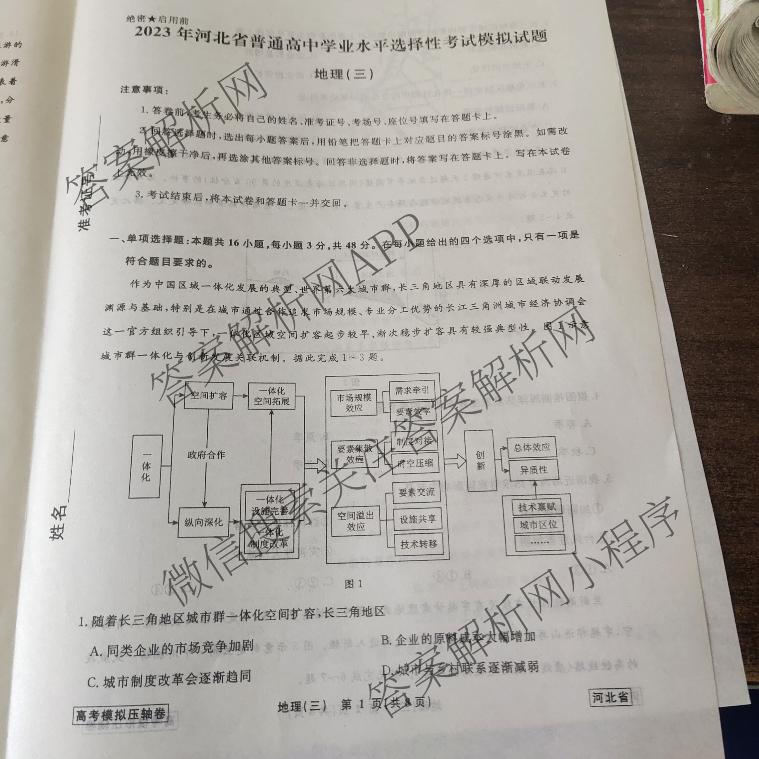 - (高三)衡水名师卷2023年河北省普通高中学业水平选择性考试模拟 高考模拟压轴卷(三)3地理(河北)答案