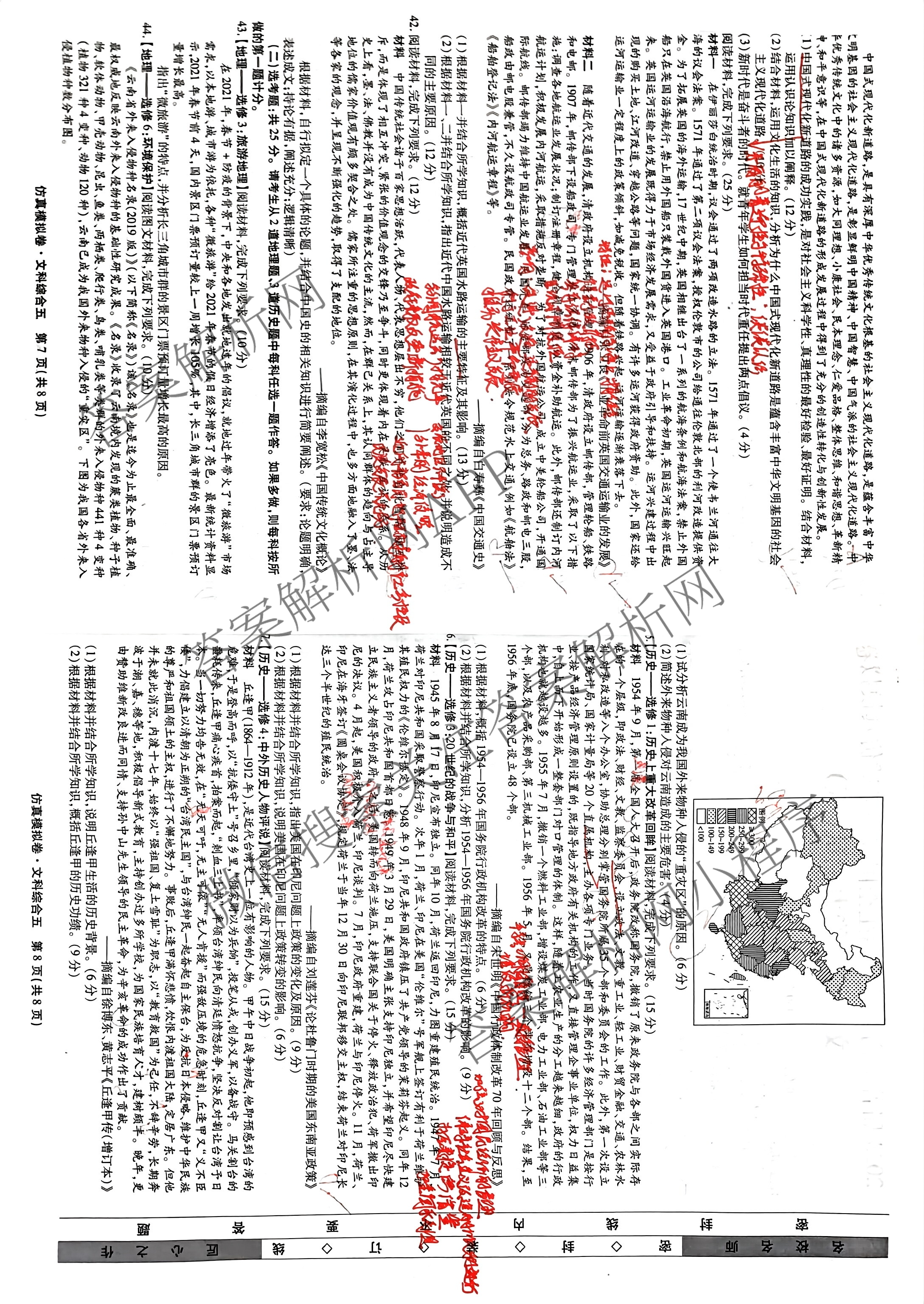 衡水名师卷2023届普通高等学校招生全国统一考试仿真模拟卷(五)5文综试题