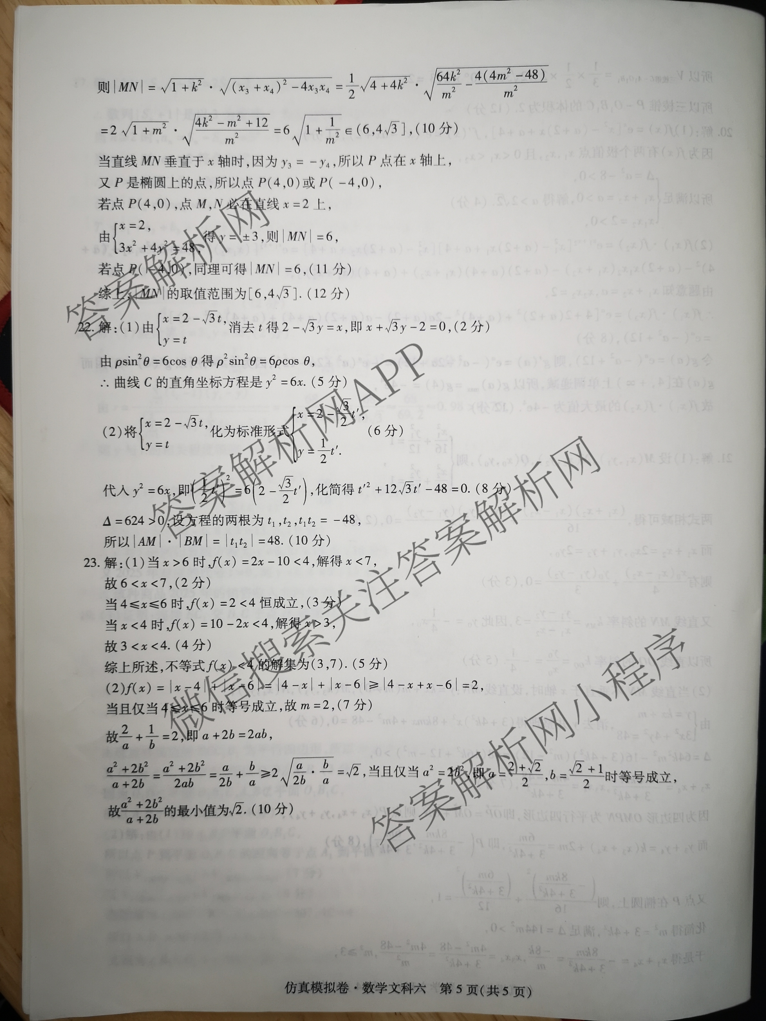 衡水名师卷2023届普通高等学校招生全国统一考试仿真模拟卷(六)6文数答案
