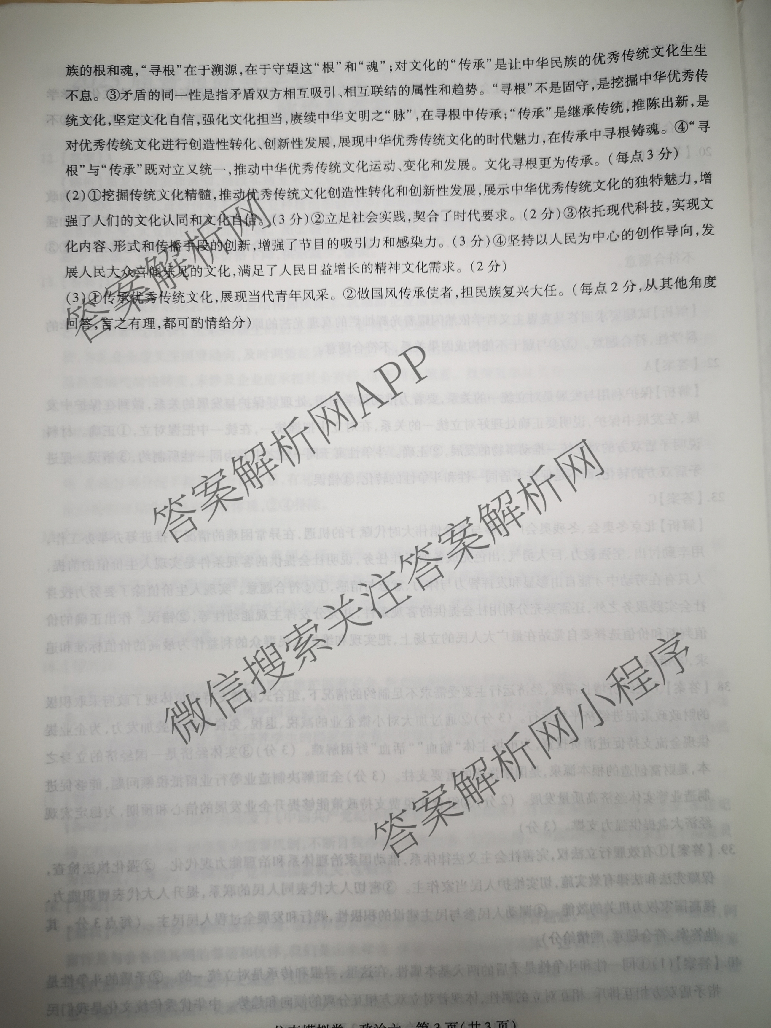 衡水名师卷2023届普通高等学校招生全国统一考试仿真模拟卷(六)6文综答案