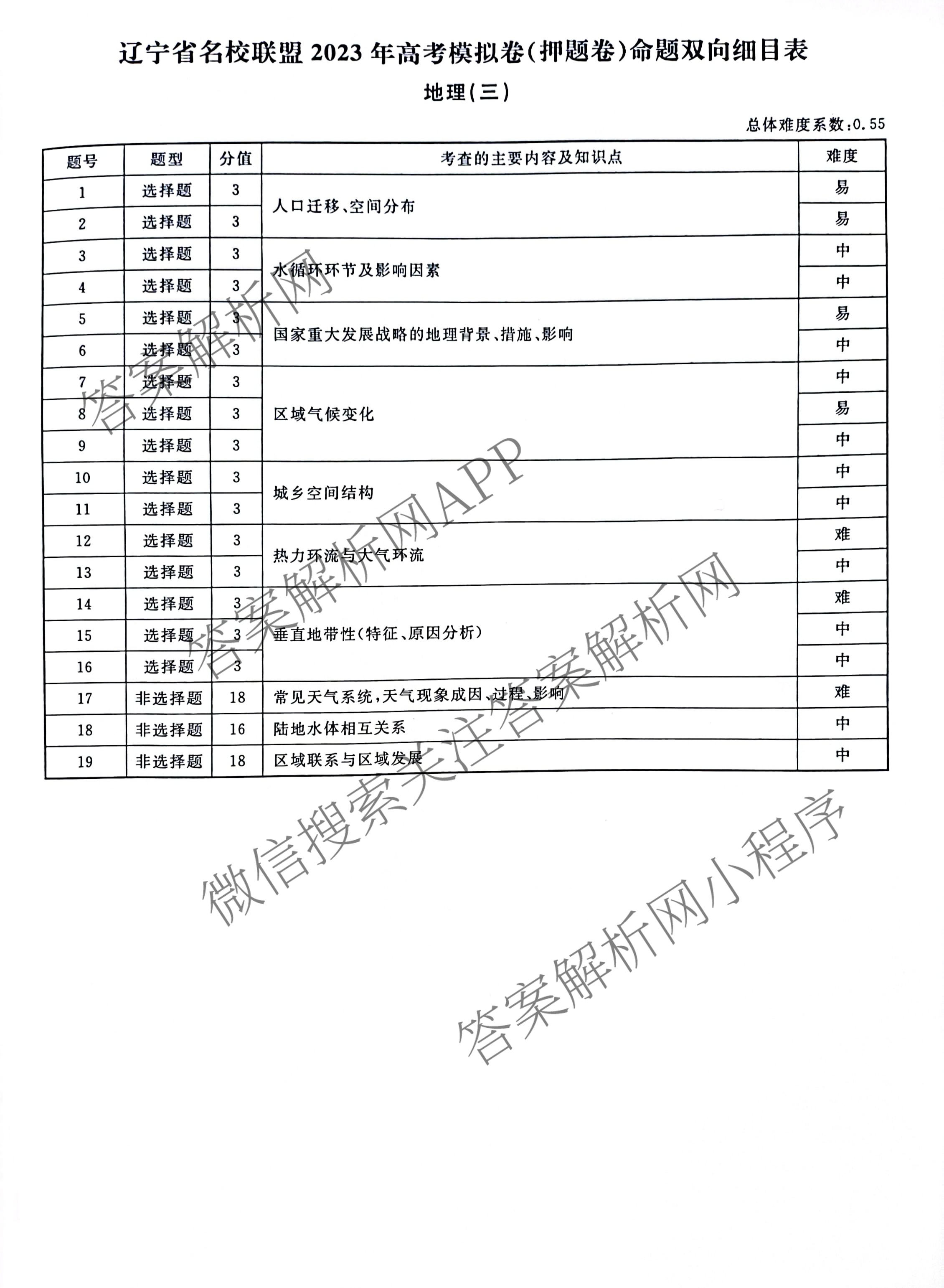 衡水名师卷 2023届高三 辽宁名校联盟押题卷 地理(三)3答案