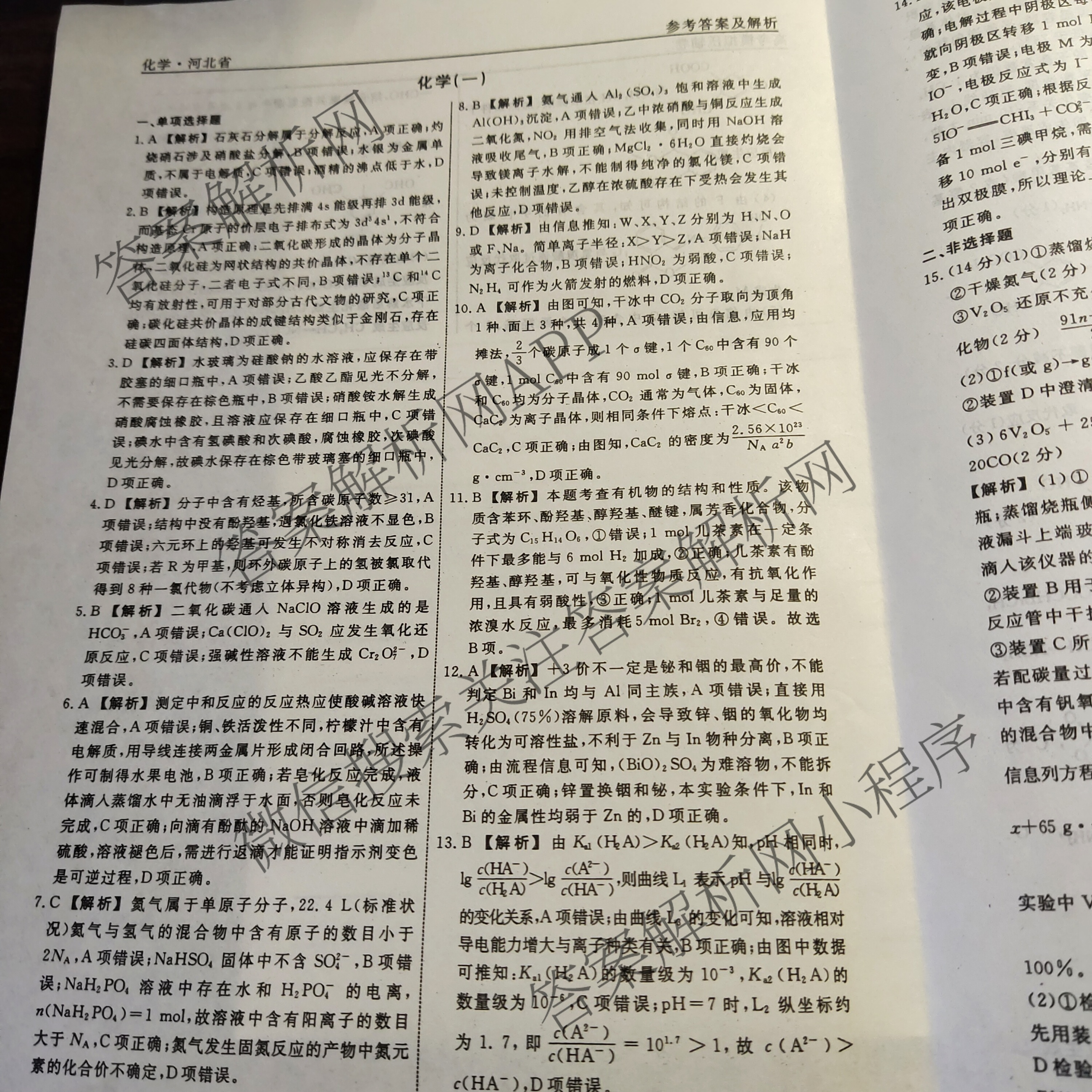 - (衡水名师卷)2023年河北省普通高中学业水平选择性考试模拟试题 高考模拟压轴卷(一)1化学(河北)答案