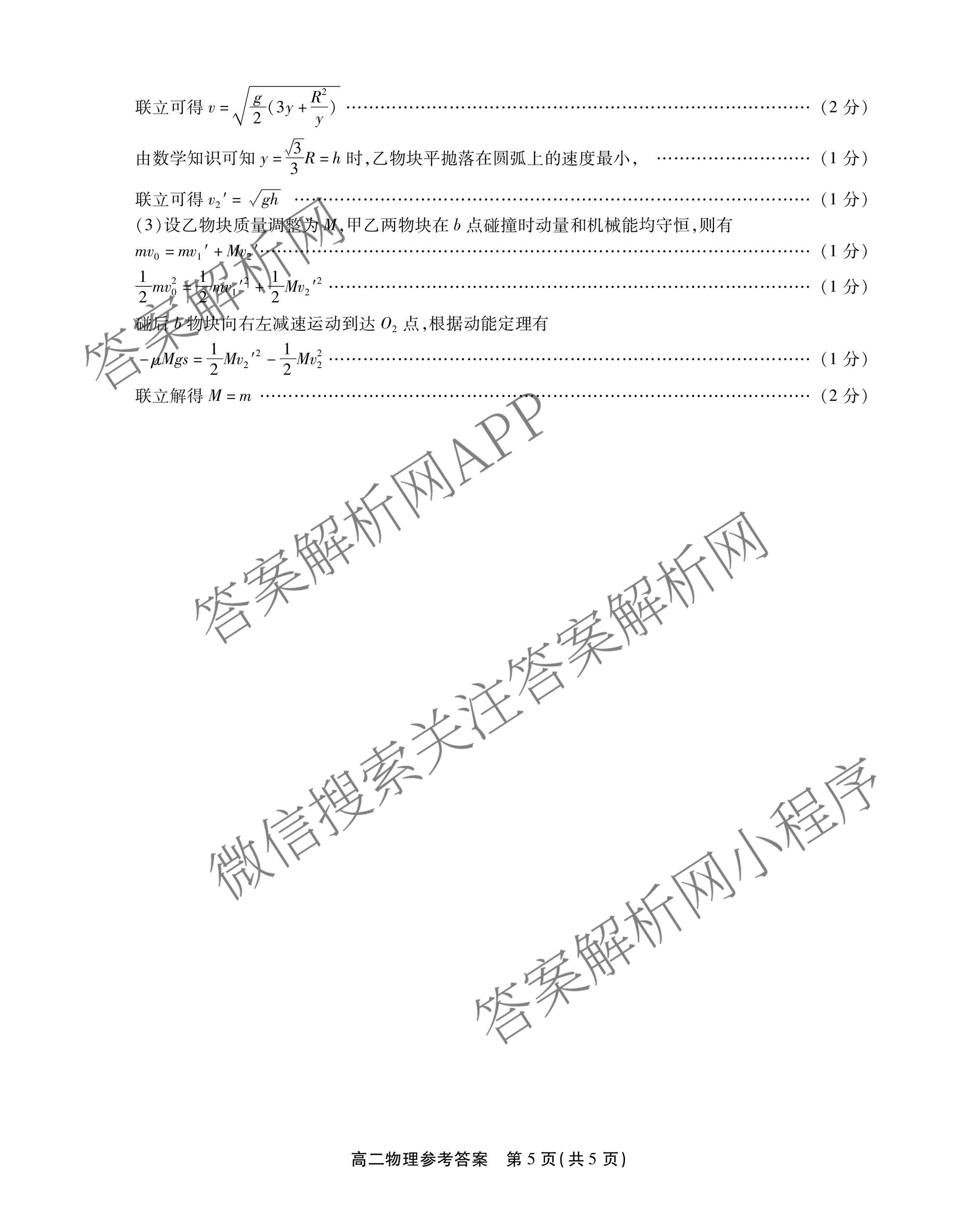 - (高二)安徽省江南十校2023年5月阶段联考物理答案
