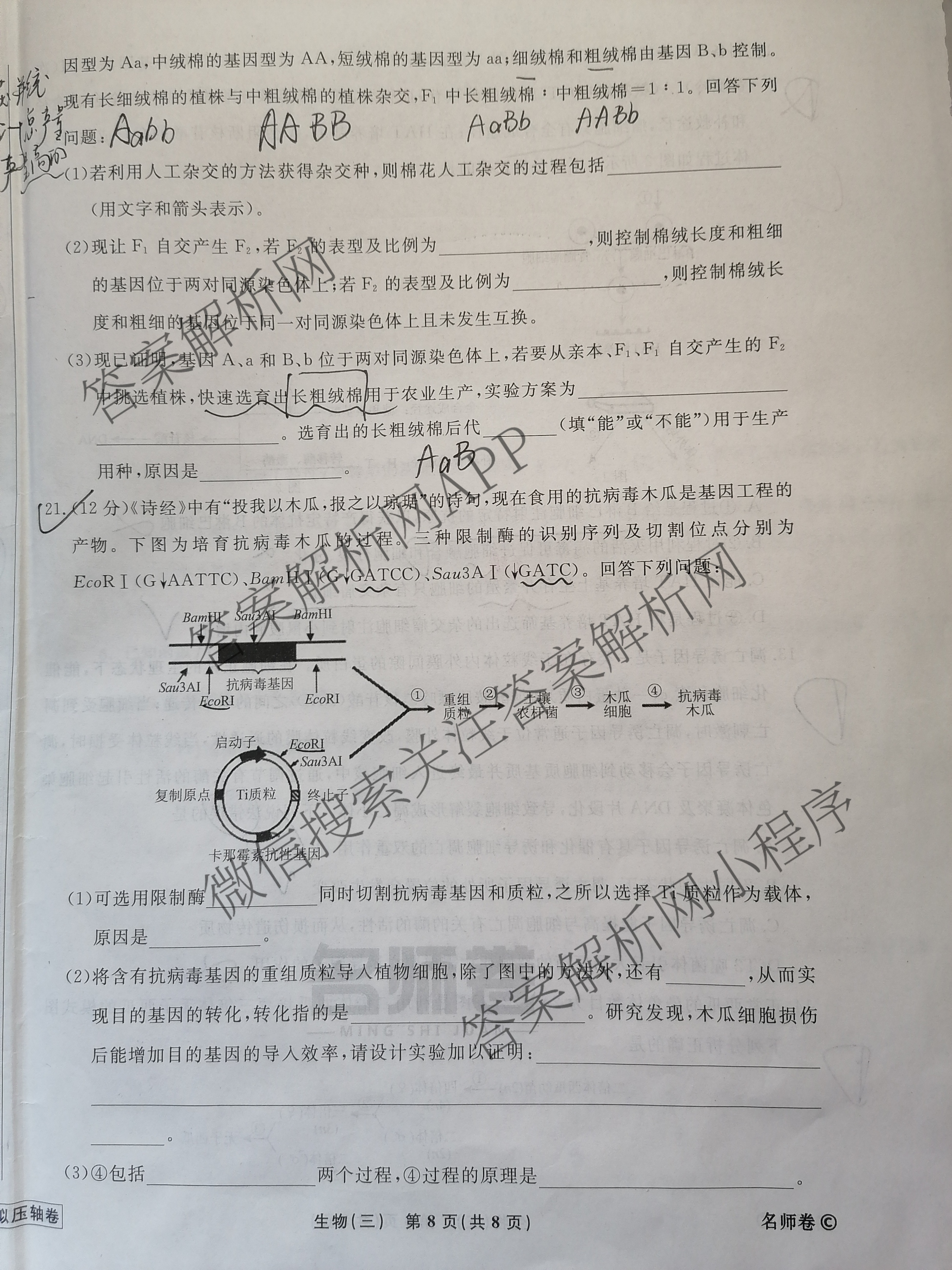 衡水名师卷·2022-2023高考模拟压轴卷 生物(福建)(三)3试题,目前分科卷答案网已经汇总了衡水名师卷·2022-2023高考模拟压轴卷 生物(福建)(三)3试题的各科答案和试卷,获取更多衡水名师卷答案解析,请在关注本站。
