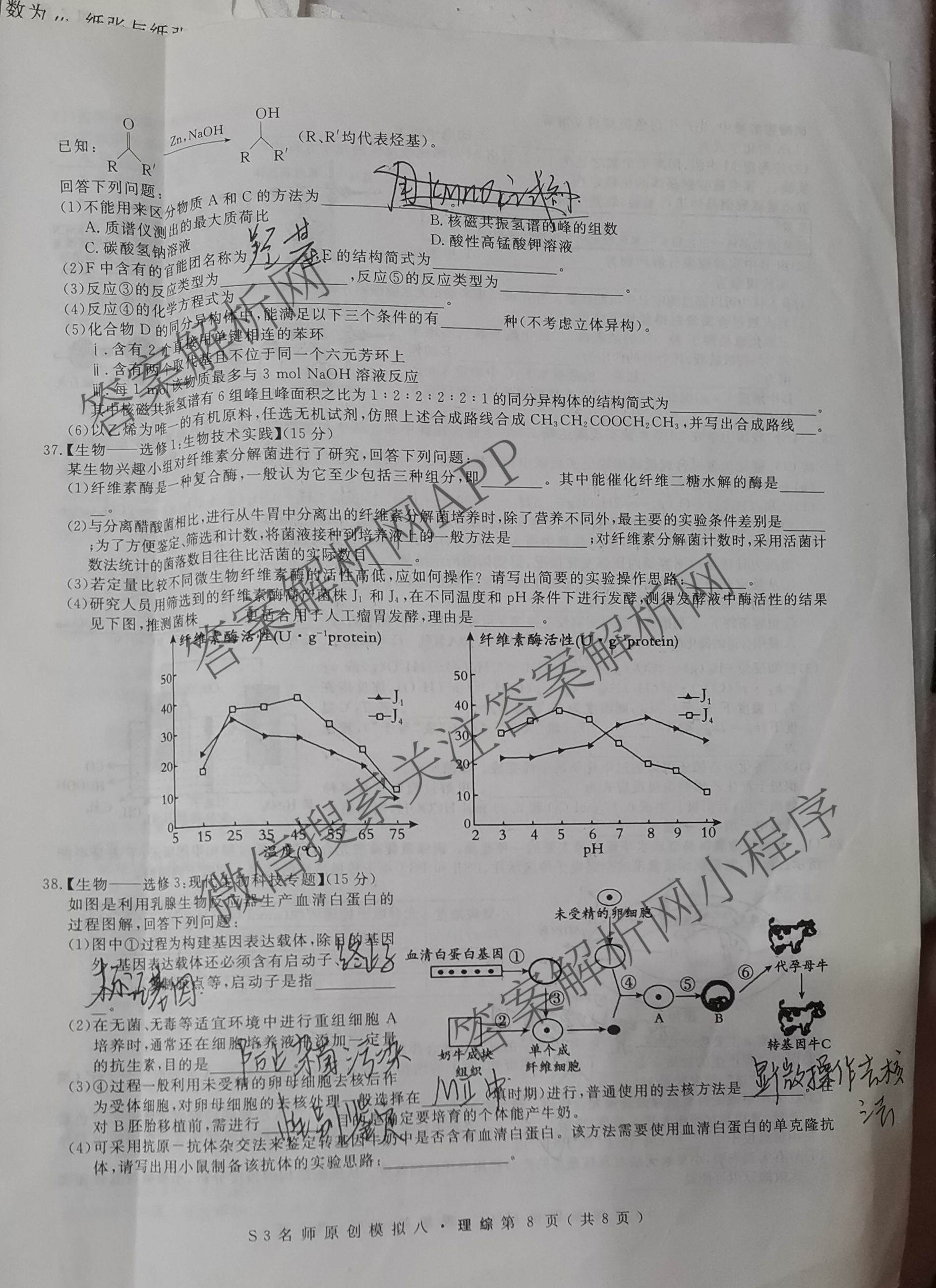 2023届高三总复习·S3名师原创模拟 理综(八)8试题,目前分科卷答案网已经汇总了2023届高三总复习·S3名师原创模拟 理综(八)8试题的各科答案和试卷,获取更多高三总复习·名师原创模拟答案解析,请在关注本站。