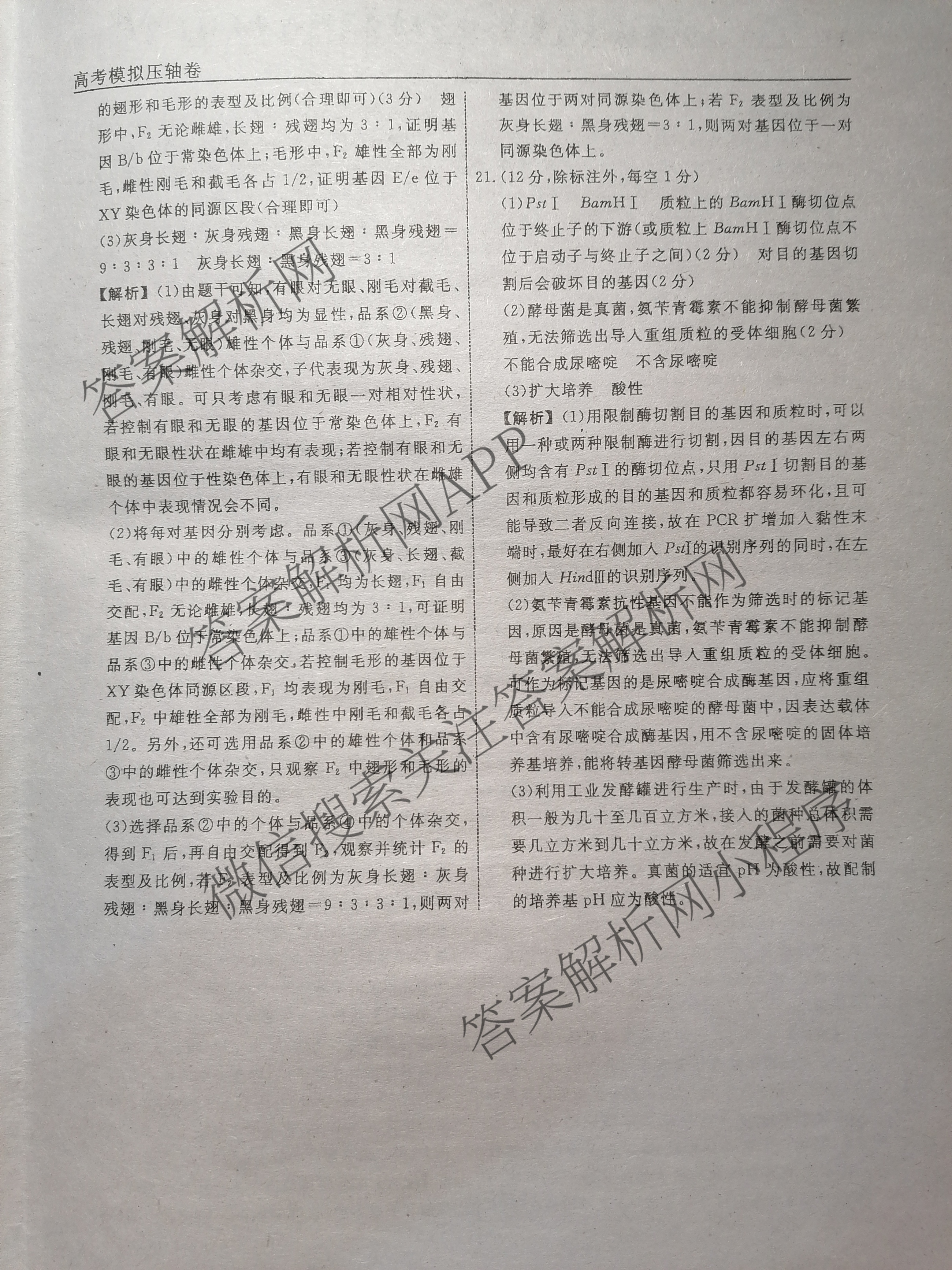 - [衡水名师卷]2022~2023高考模拟压轴卷 生物(湖北)(一)1答案