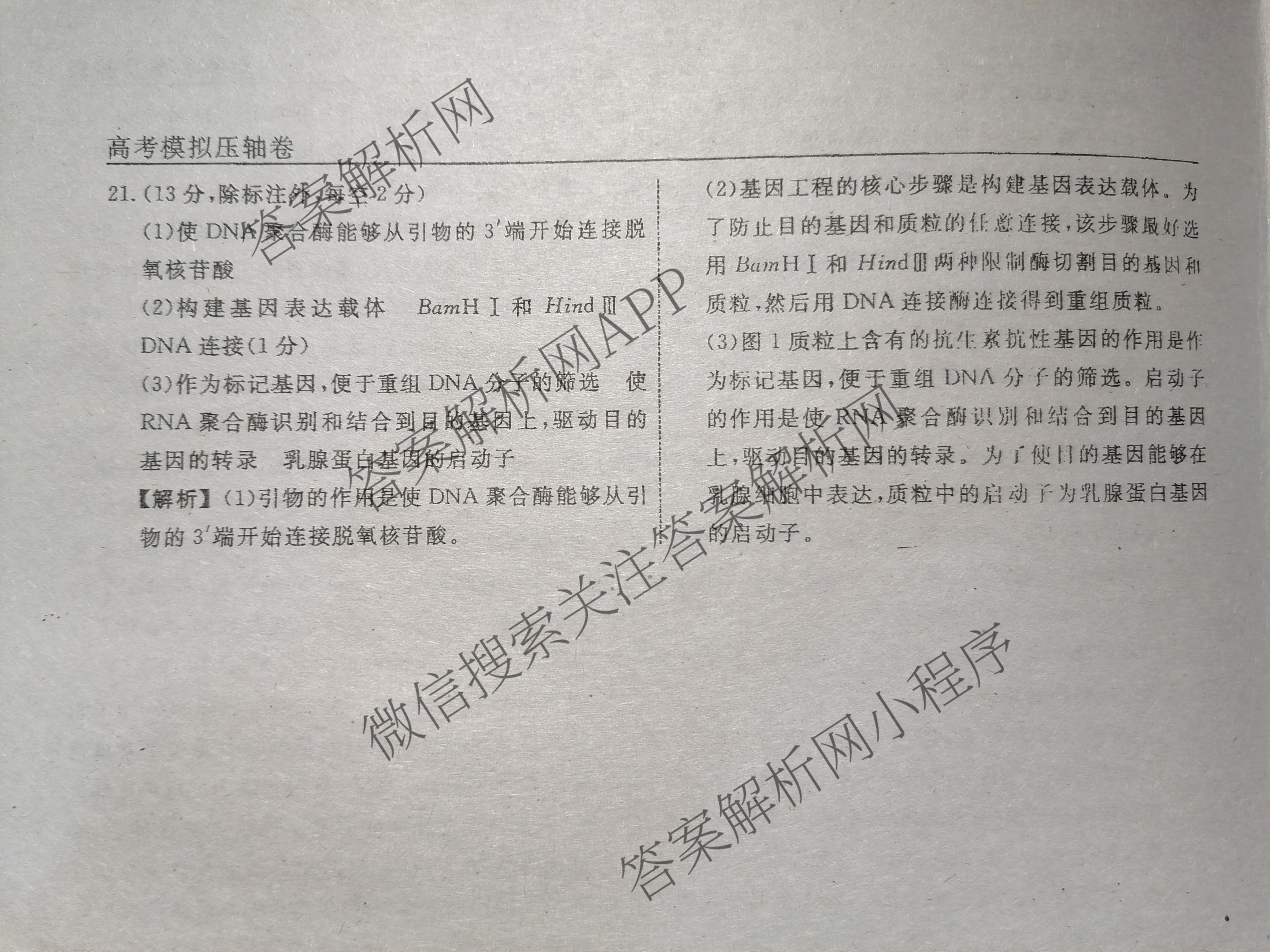 - (衡水名师卷)2022~2023高考模拟压轴卷 生物(湖北)(二)2答案