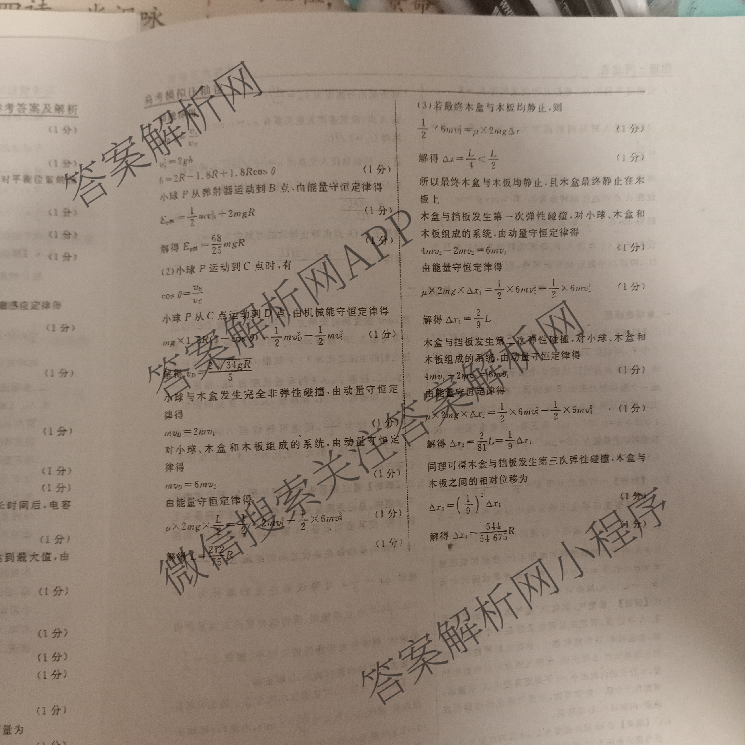 - 2022-2023[高三](衡水名师卷)·高考模拟压轴卷 物理(湖南)(二)2答案