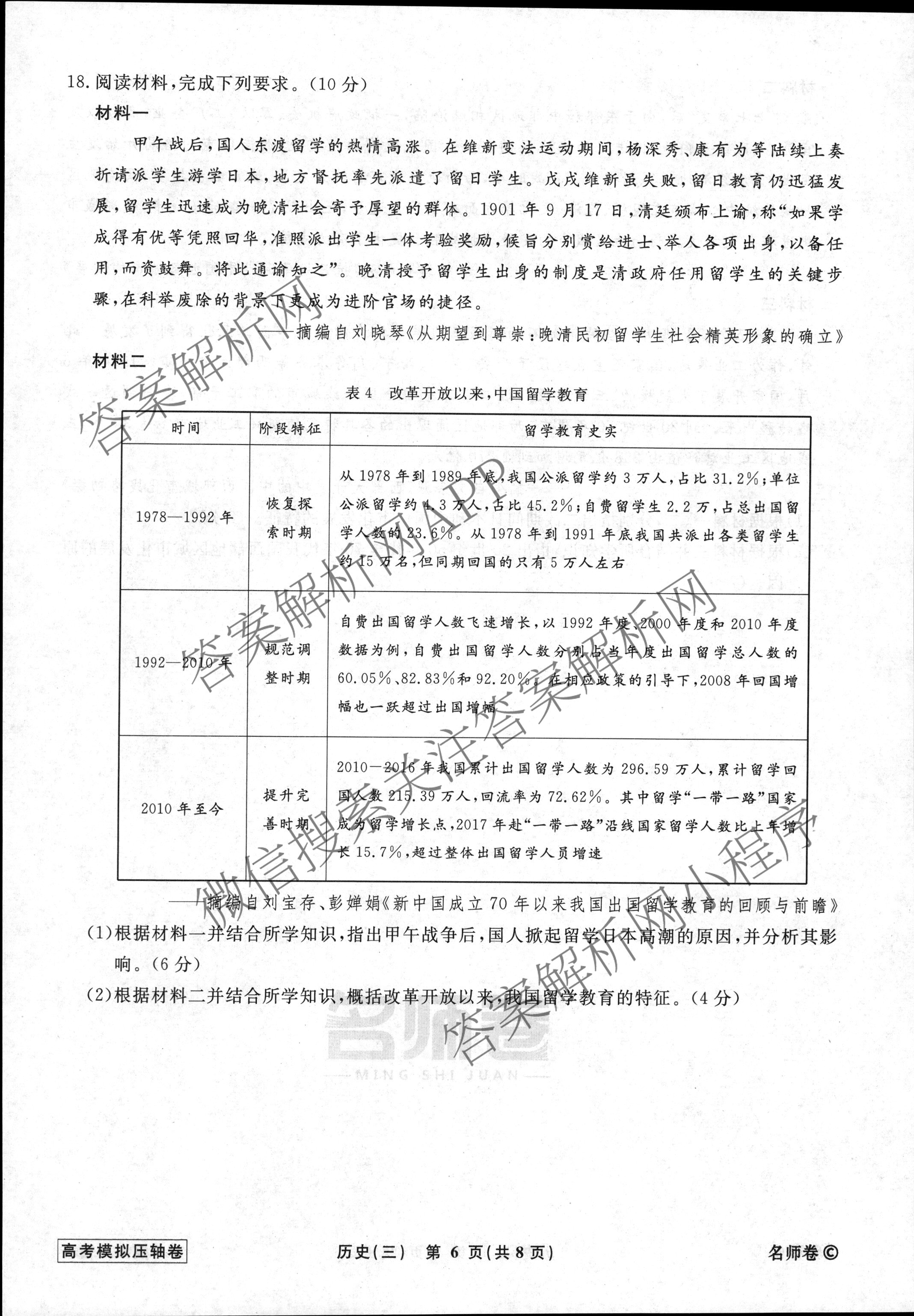 衡水名师卷·2022-2023高考模拟压轴卷 历史(湖南)(三)3试题,目前分科卷答案网已经汇总了衡水名师卷·2022-2023高考模拟压轴卷 历史(湖南)(三)3试题的各科答案和试卷,获取更多衡水名师卷答案解析,请在关注本站。