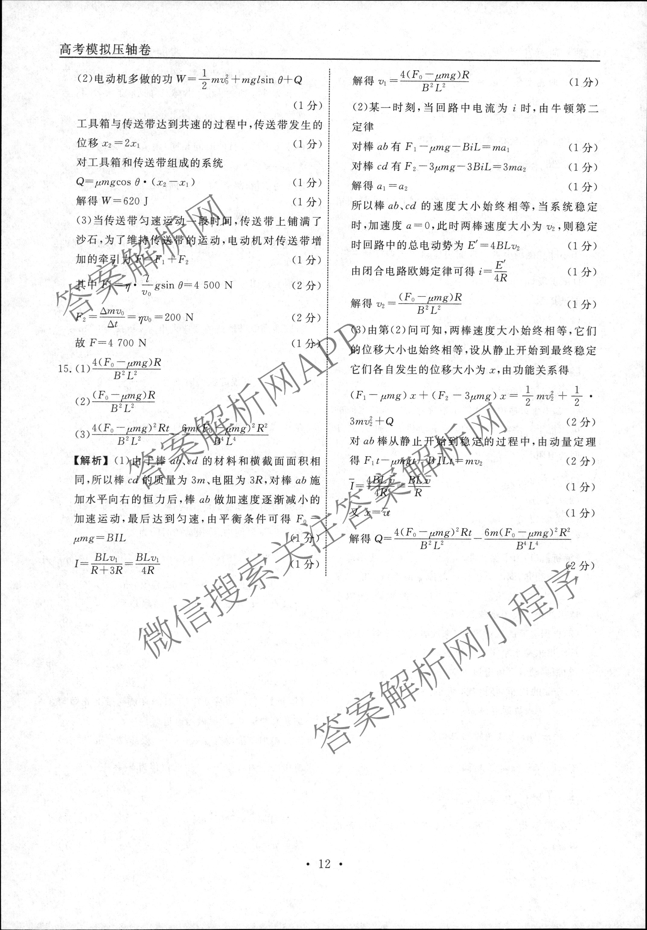 - 2022~2023[衡水名师卷]高考模拟压轴卷 物理(湖南)(三)3答案