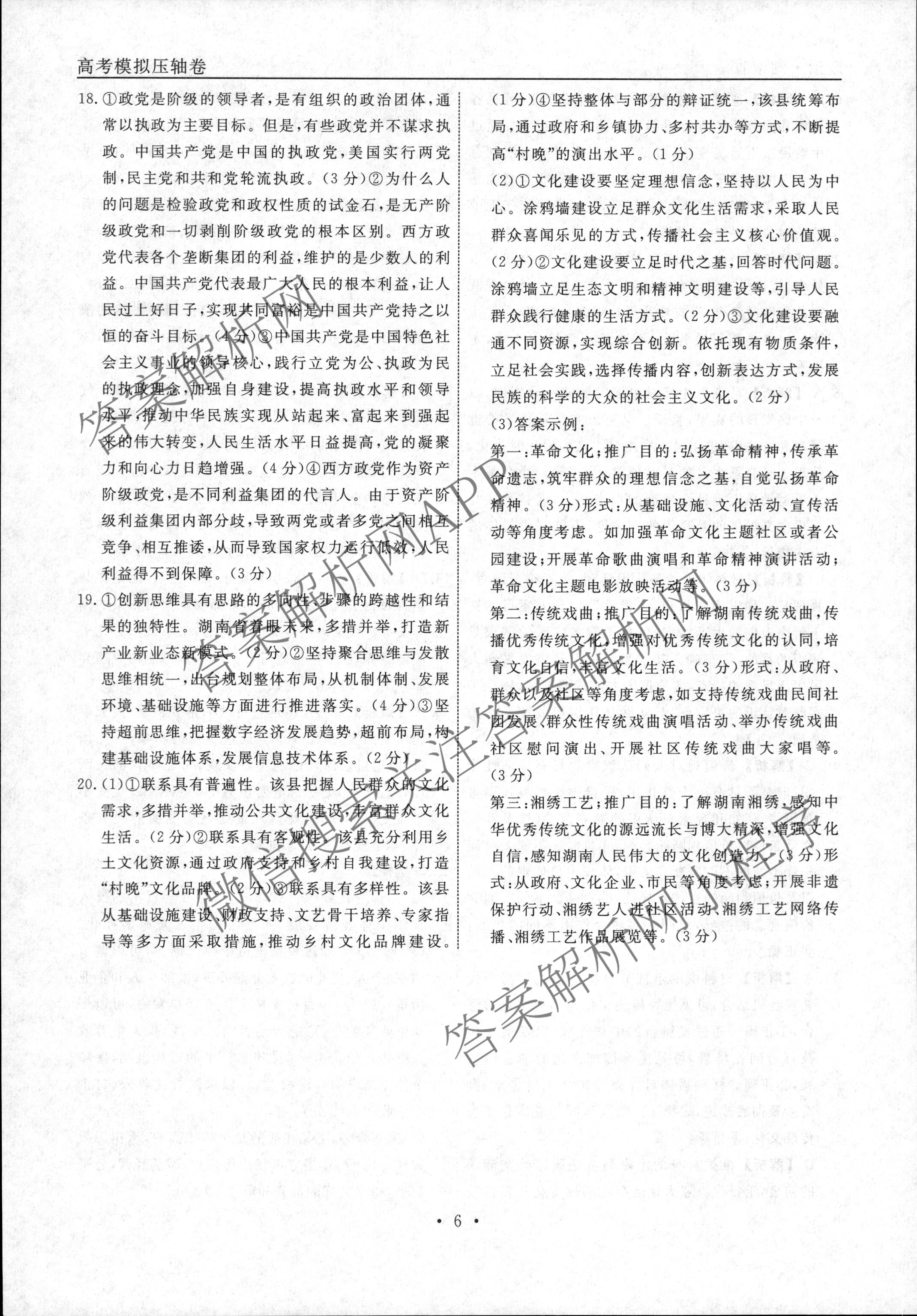 [衡水名师卷]·2022~2023高考模拟压轴卷 政治(湖南)(一)1答案