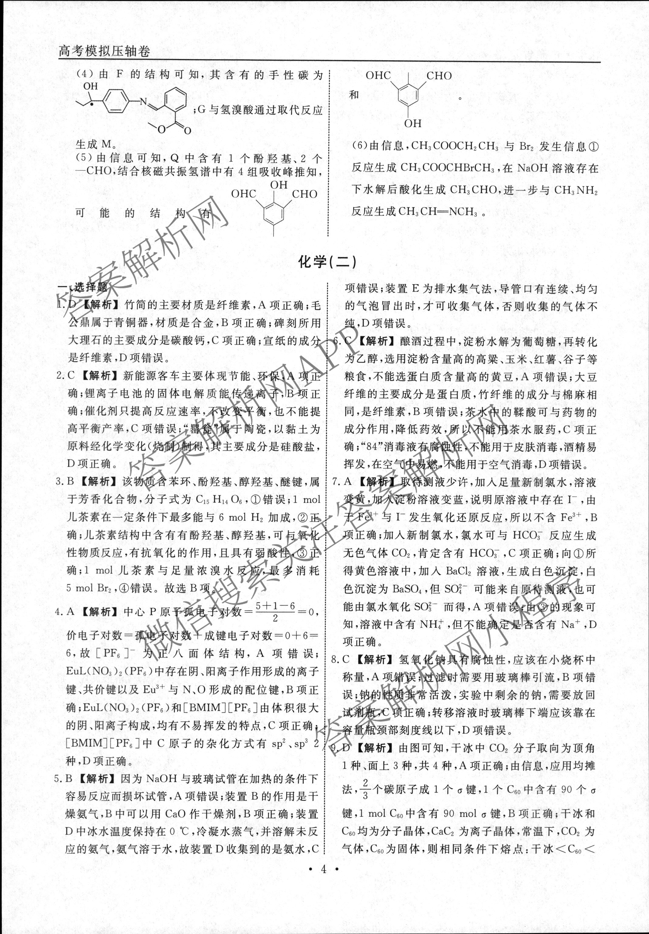 - [高三][衡水名师卷]·2022-2023高考模拟压轴卷 化学(湖南)(一)1答案