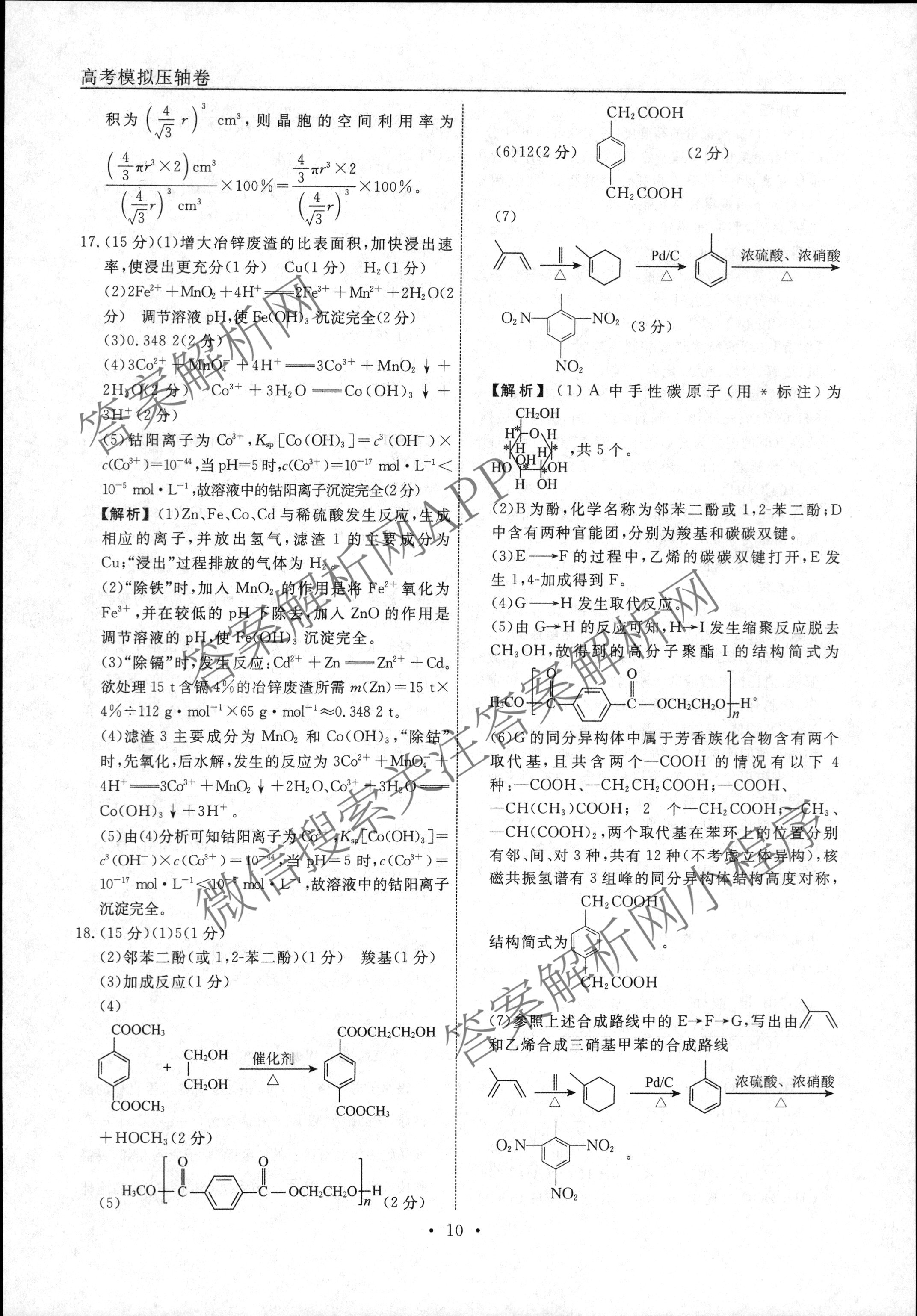 - 2022-2023[高三][衡水名师卷]·高考模拟压轴卷 化学(湖南)(三)3答案