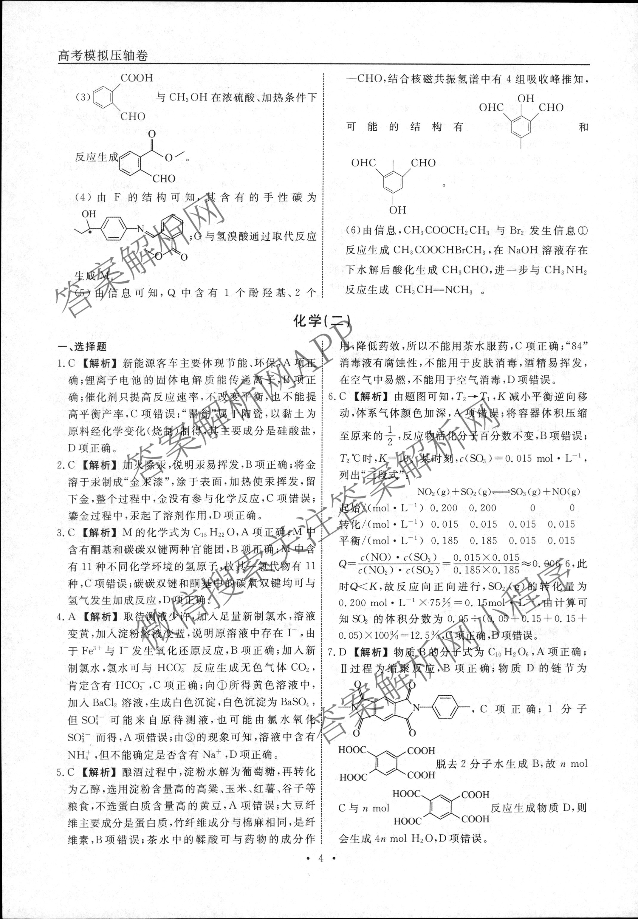 - [高三][衡水名师卷]·2022-2023高考模拟压轴卷 化学(湖南)(一)1答案