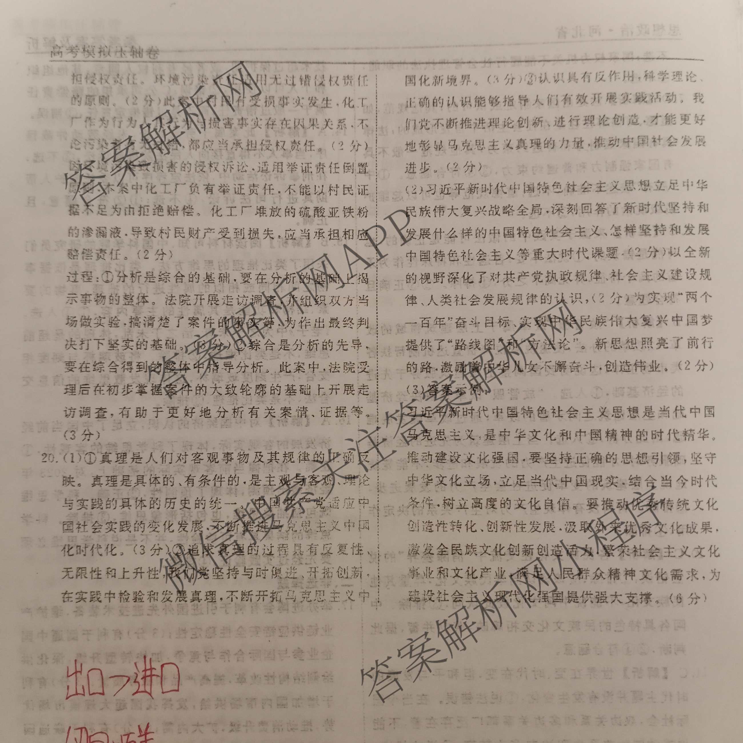 - [衡水名师卷]2022~2023高考模拟压轴卷 文综(新教材)(二)2答案