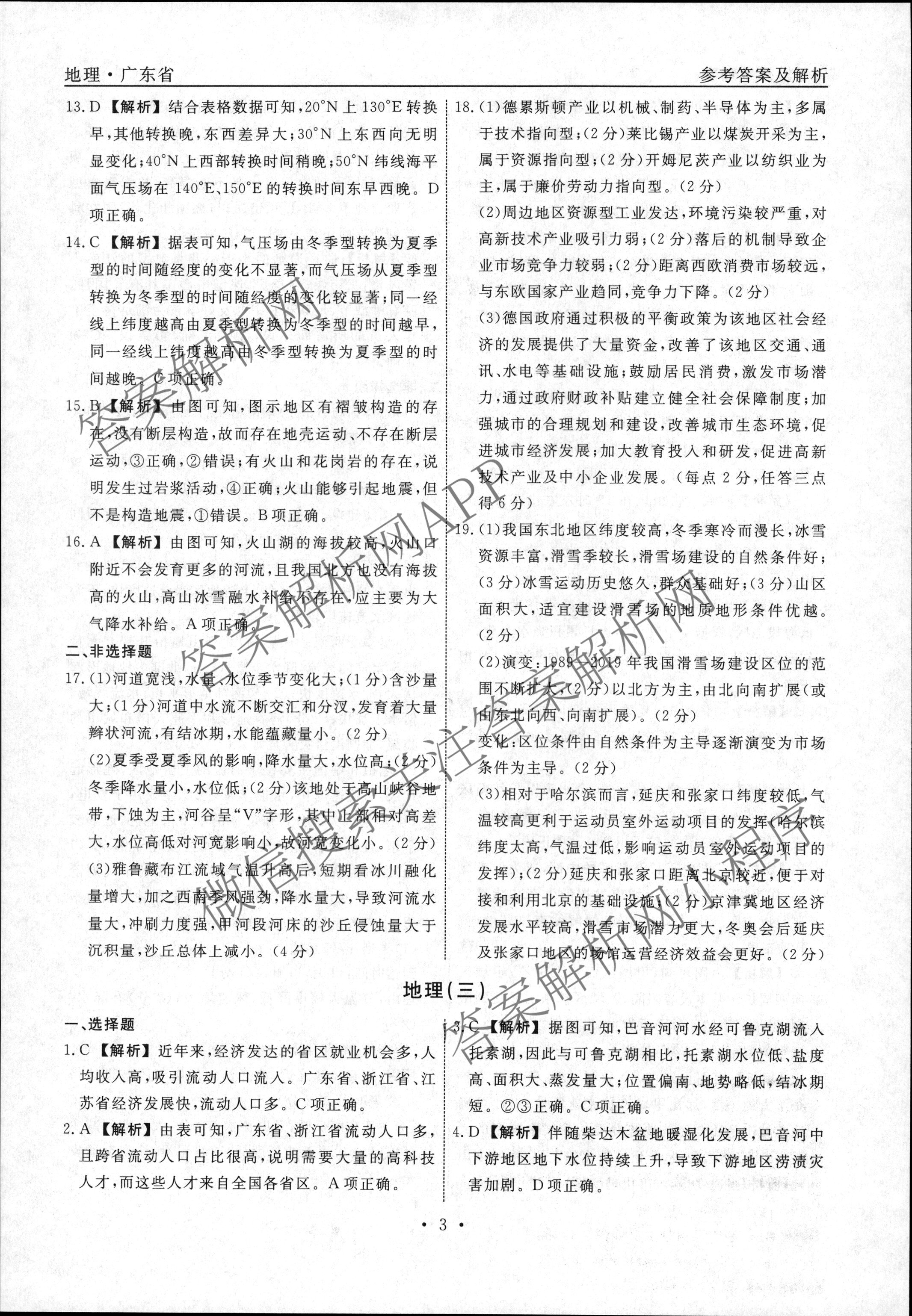 [高三]衡水名师卷2022~2023高考模拟压轴卷 地理(广东)(二)2答案