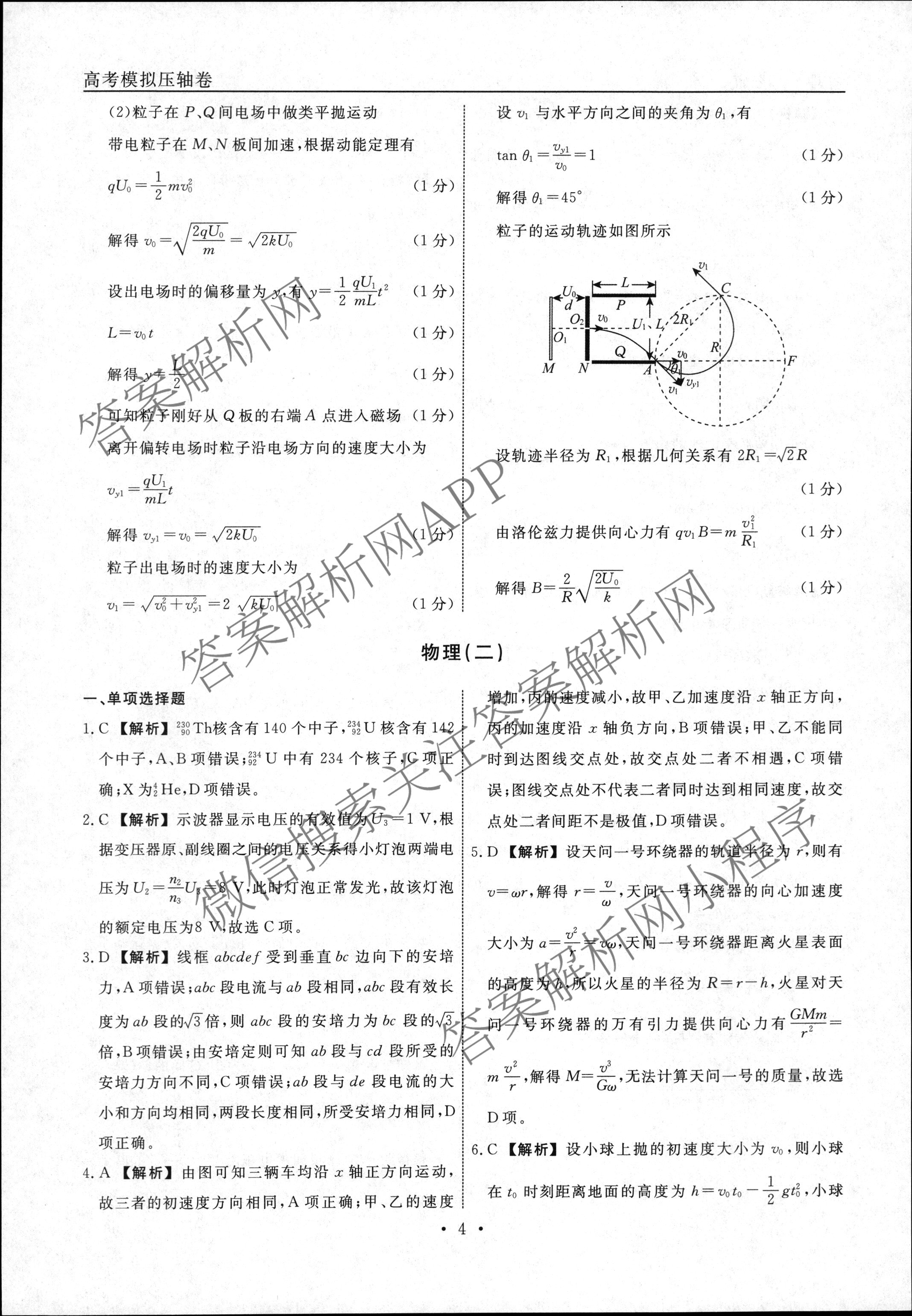 - (高三)(衡水名师卷)·2022-2023高考模拟压轴卷 物理(山东)(一)1答案