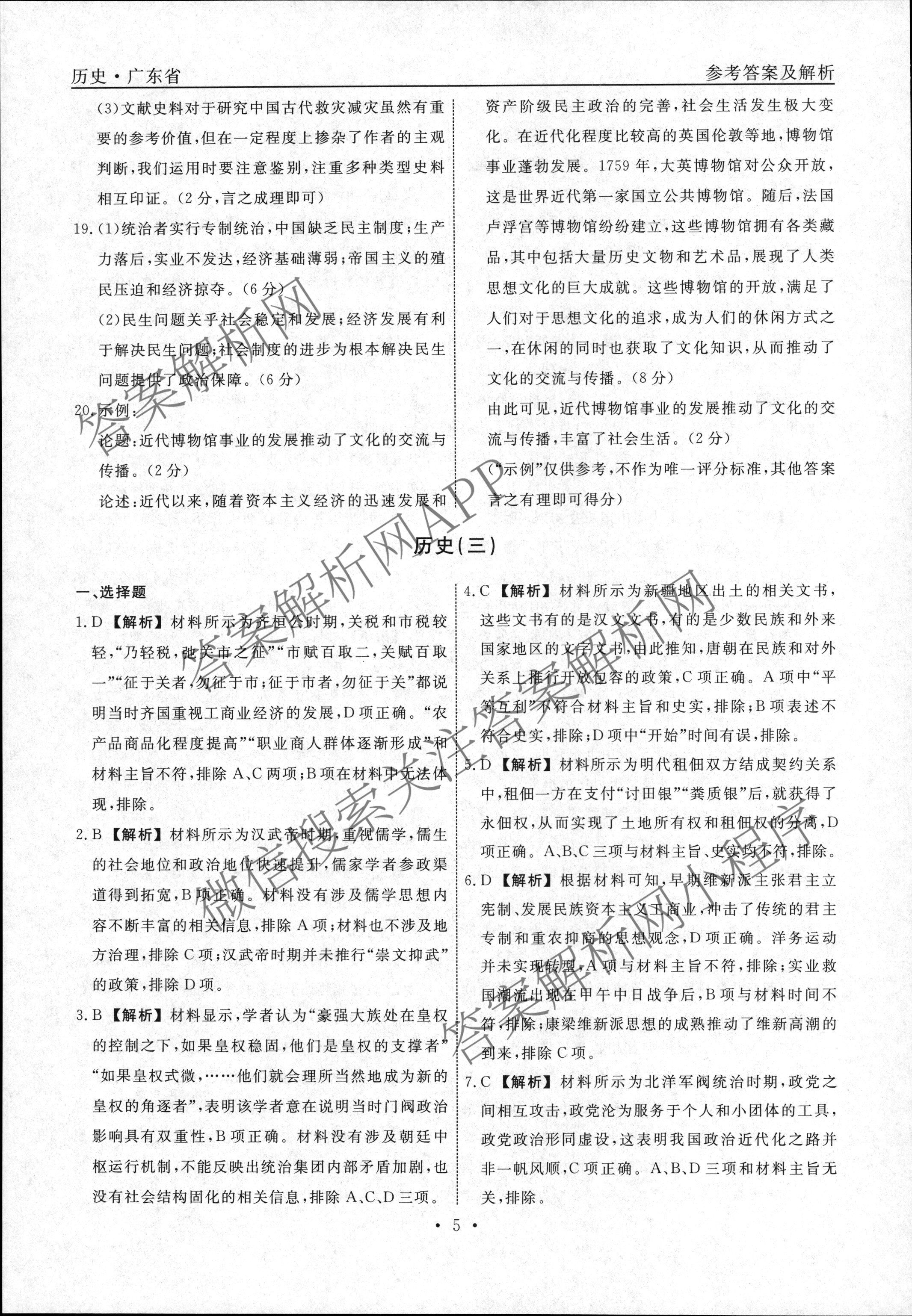 2022~2023(高三)[衡水名师卷]·高考模拟压轴卷 历史(广东)(二)2答案