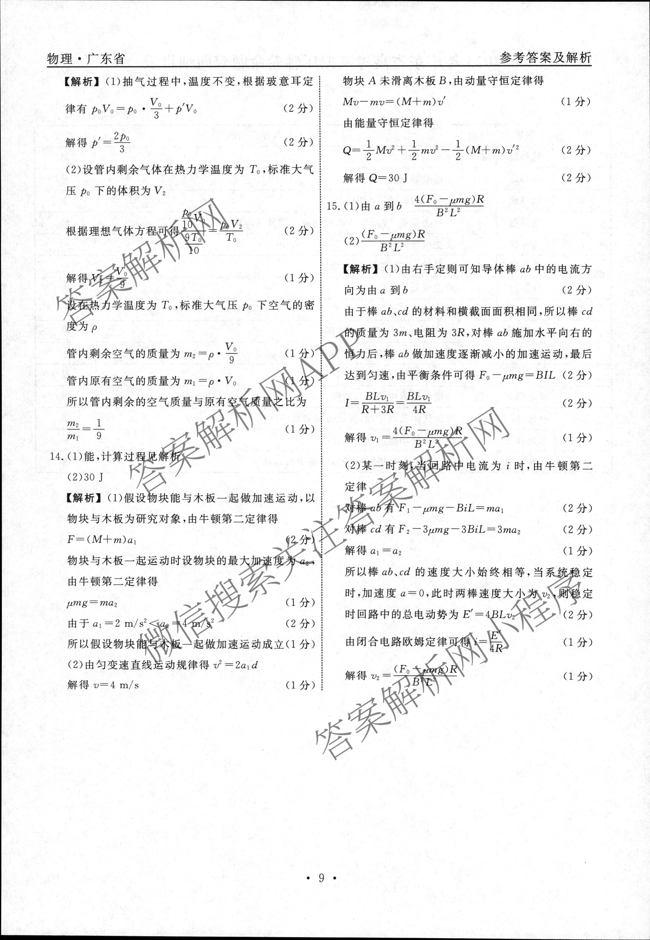 [衡水名师卷]2022~2023高考模拟压轴卷 物理(广东)(三)3答案