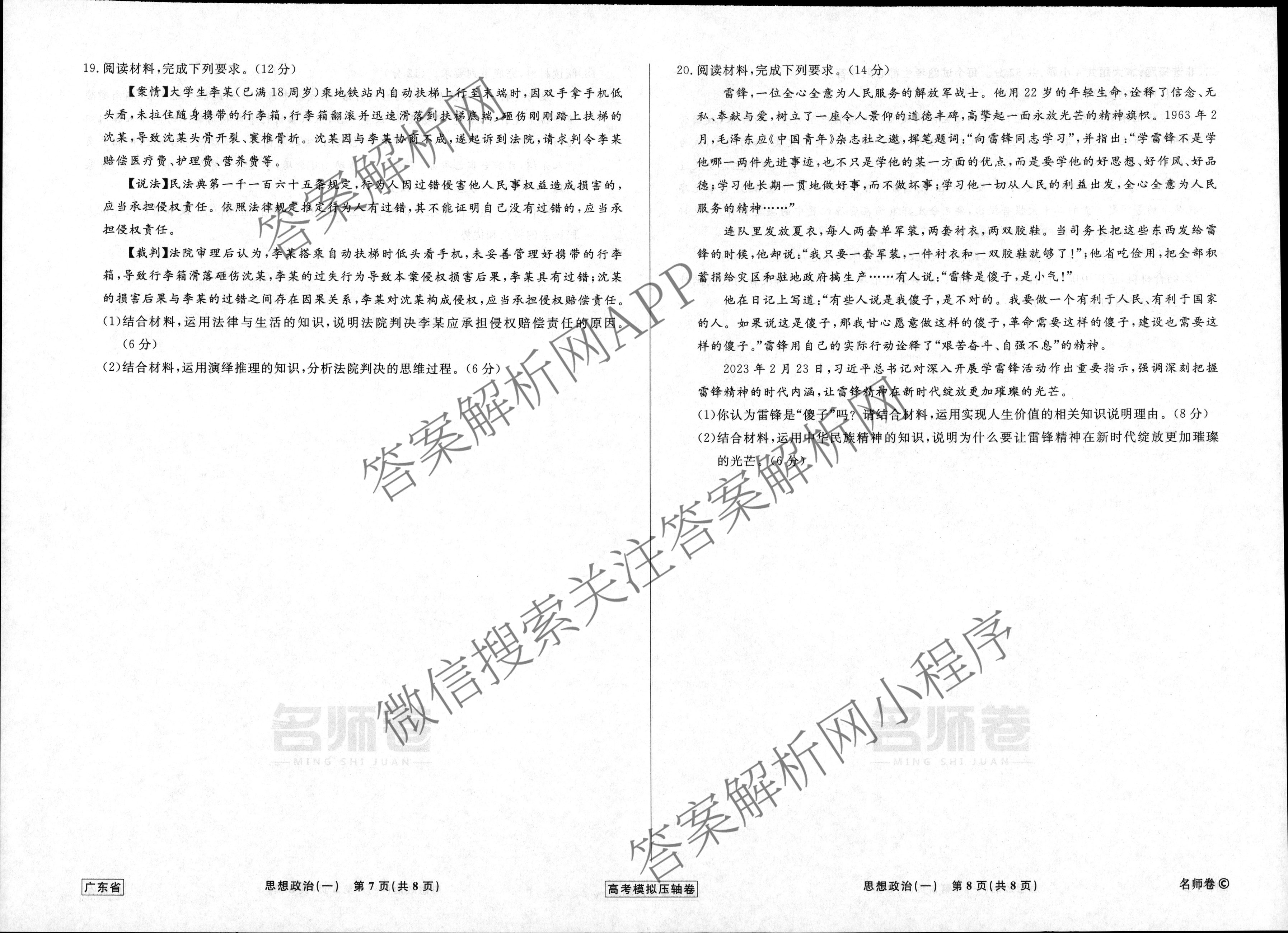 2022-2023(高三)(衡水名师卷)高考模拟压轴卷 政治(广东)(一)1试题