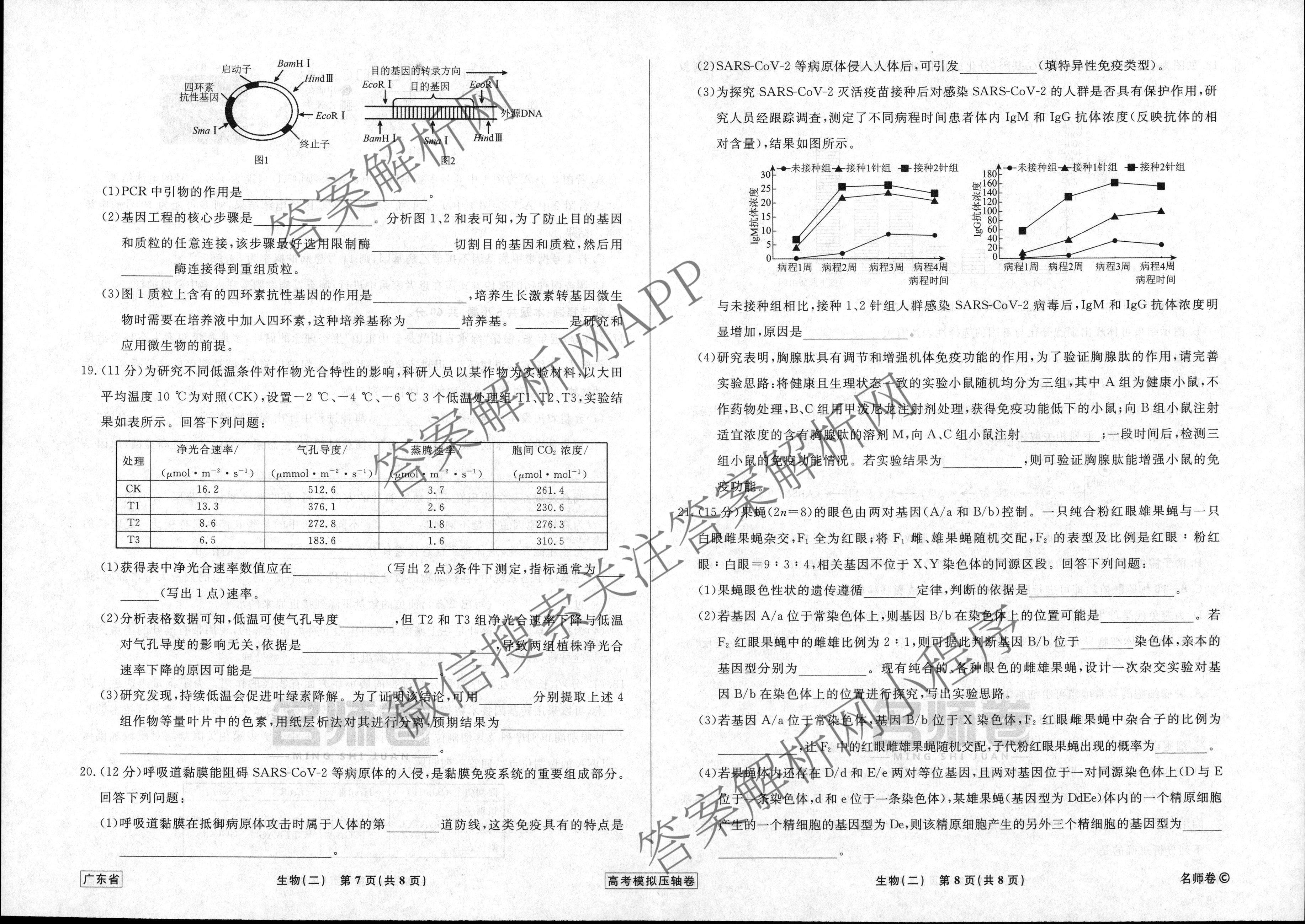 衡水名师卷·2022-2023高考模拟压轴卷 生物(广东)(二)2试题,目前分科卷答案网已经汇总了衡水名师卷·2022-2023高考模拟压轴卷 生物(广东)(二)2试题的各科答案和试卷,获取更多衡水名师卷答案解析,请在关注本站。