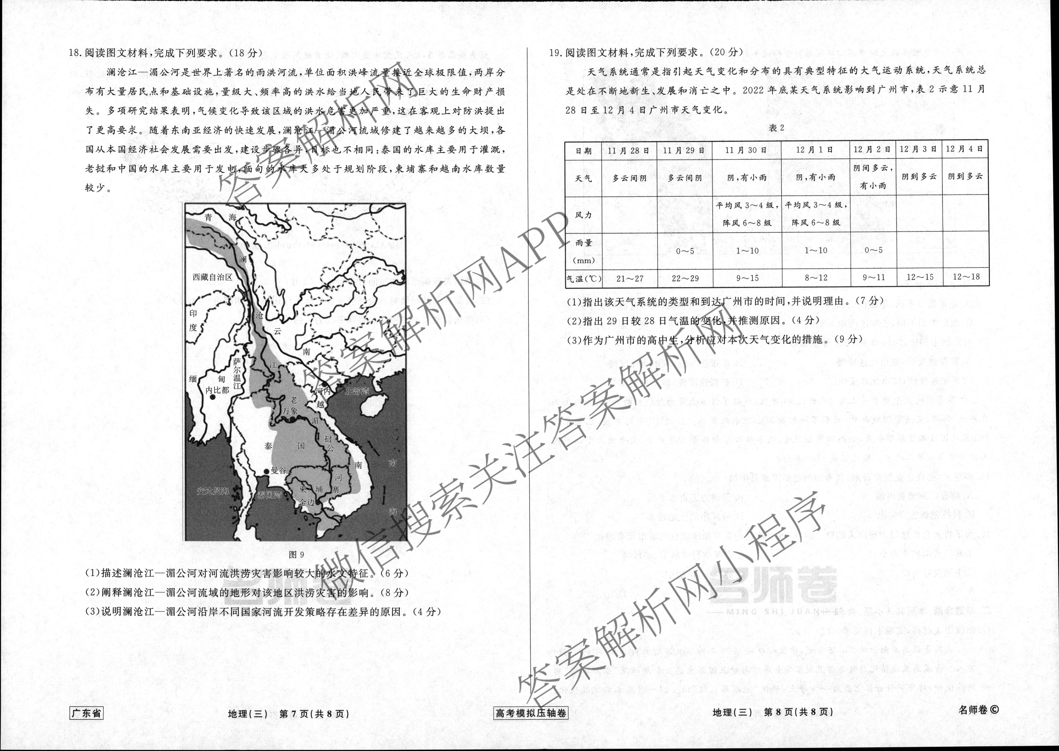 - 2022~2023高三衡水名师卷高考模拟压轴卷 地理(广东)(三)3答案