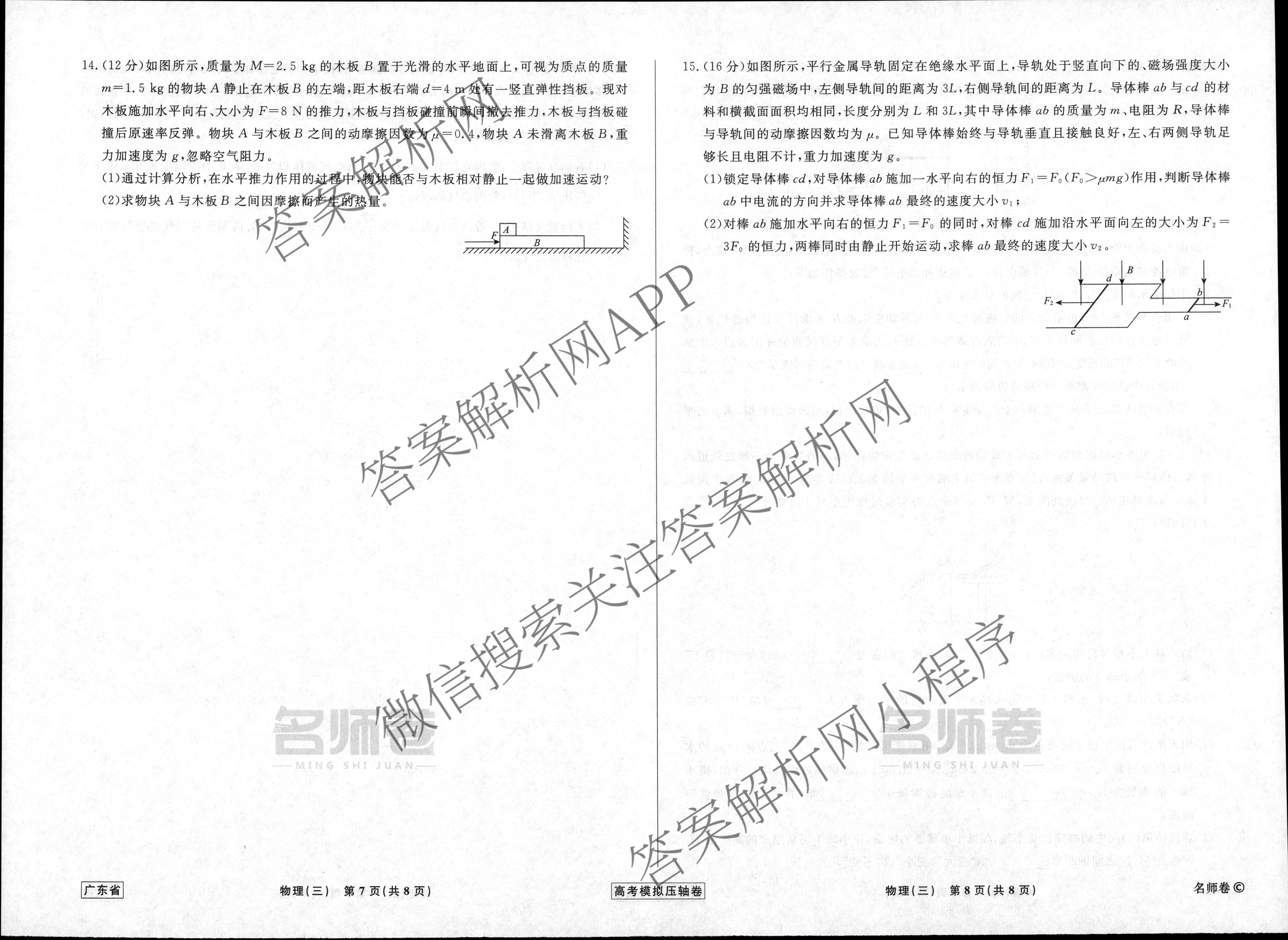 衡水名师卷·2022-2023高考模拟压轴卷 物理(广东)(三)3试题,目前分科卷答案网已经汇总了衡水名师卷·2022-2023高考模拟压轴卷 物理(广东)(三)3试题的各科答案和试卷,获取更多衡水名师卷答案解析,请在关注本站。