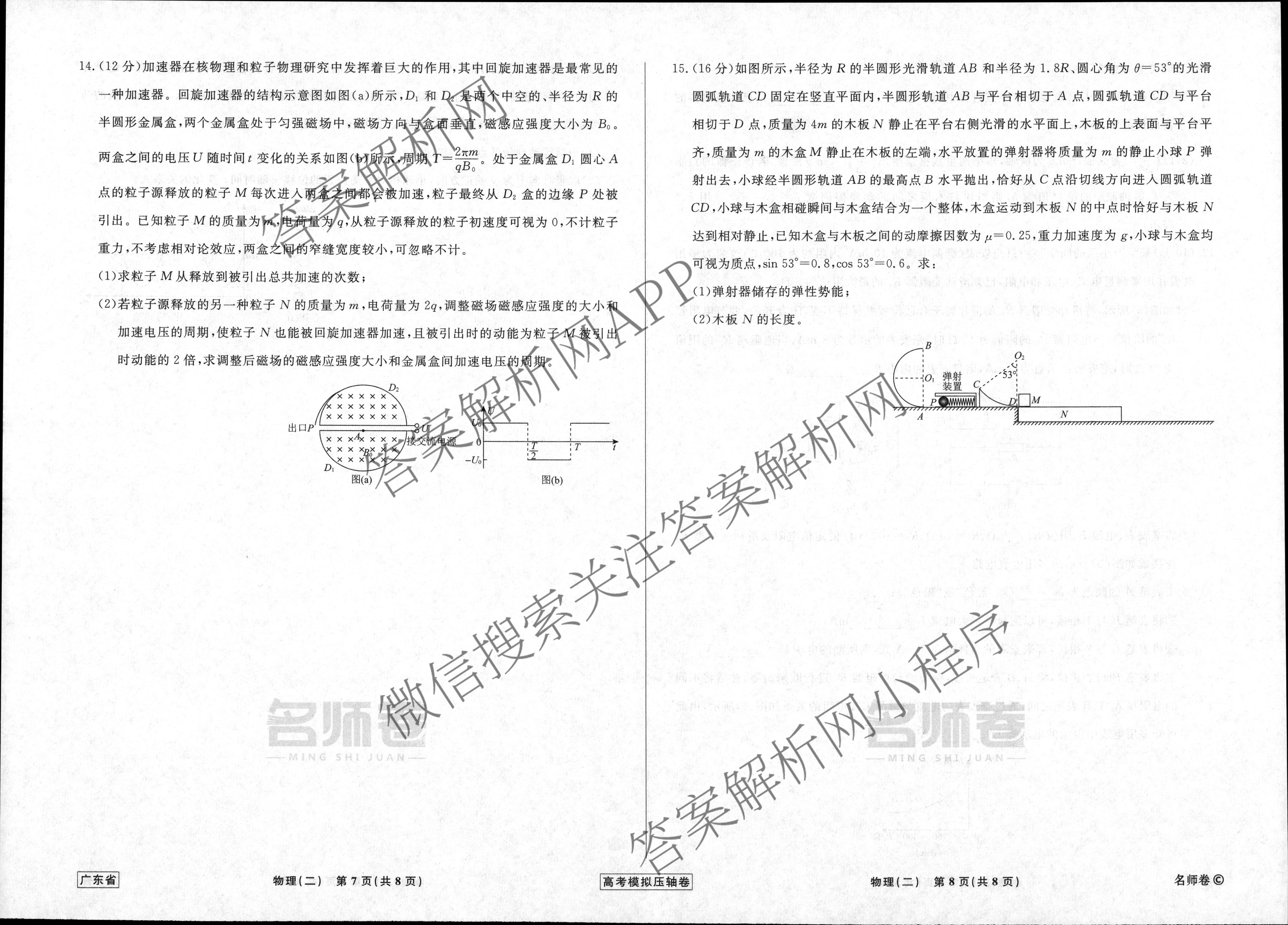 - 2022~2023[衡水名师卷]·高考模拟压轴卷 物理(广东)(二)2答案