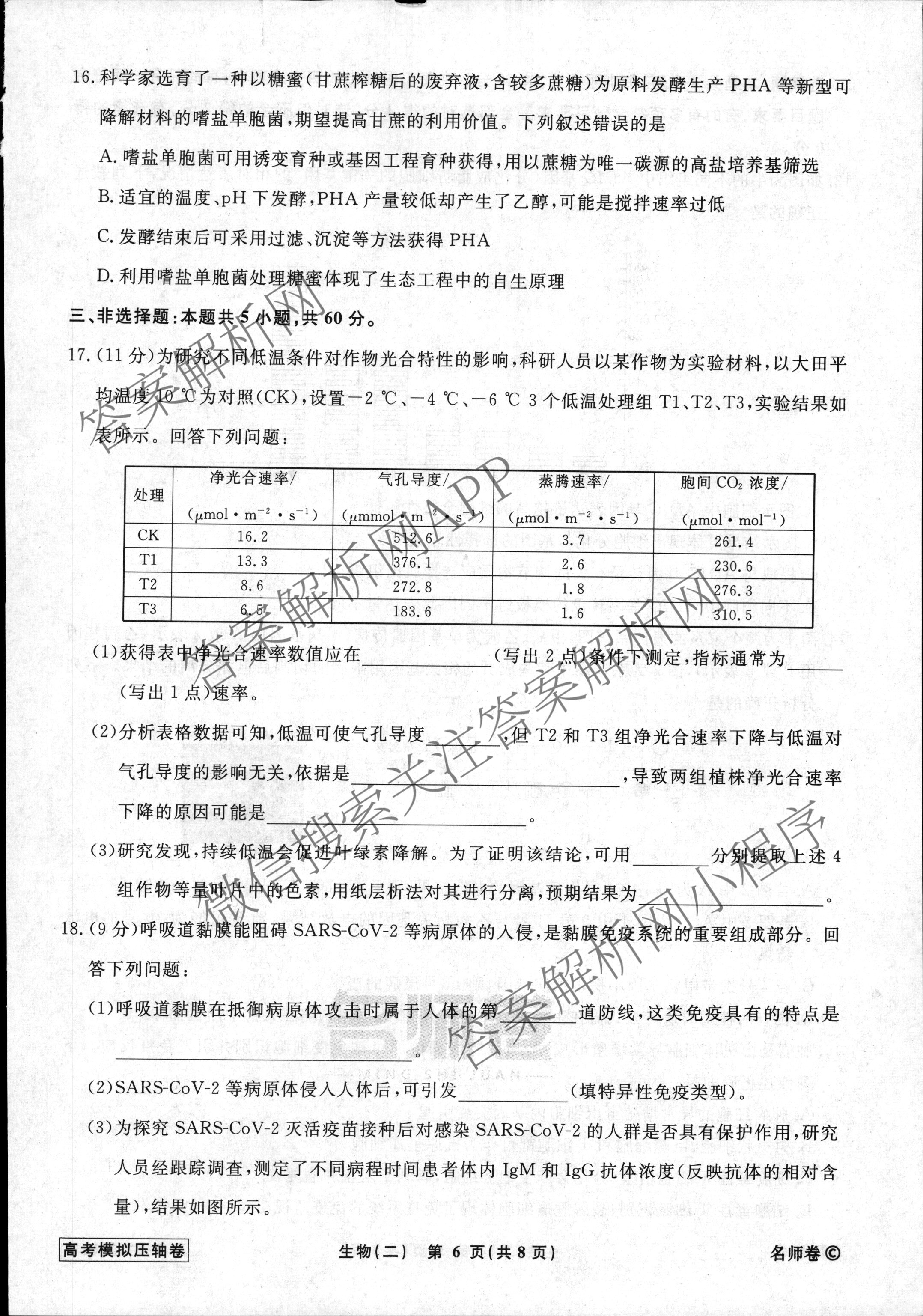 衡水名师卷·2022-2023高考模拟压轴卷 生物(湖南)(二)2试题,目前分科卷答案网已经汇总了衡水名师卷·2022-2023高考模拟压轴卷 生物(湖南)(二)2试题的各科答案和试卷,获取更多衡水名师卷答案解析,请在关注本站。