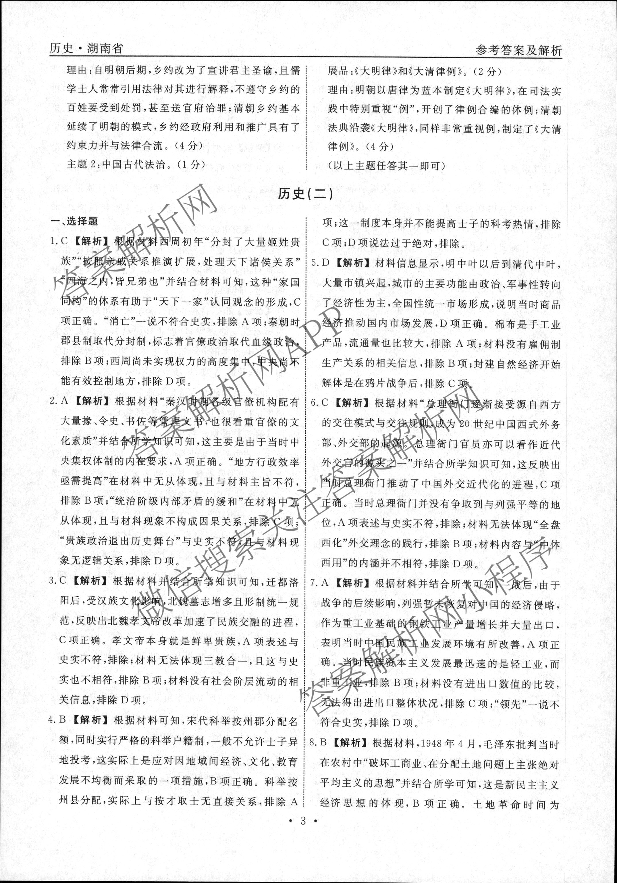 - (衡水名师卷)2022-2023高考模拟压轴卷 历史(湖南)(一)1答案