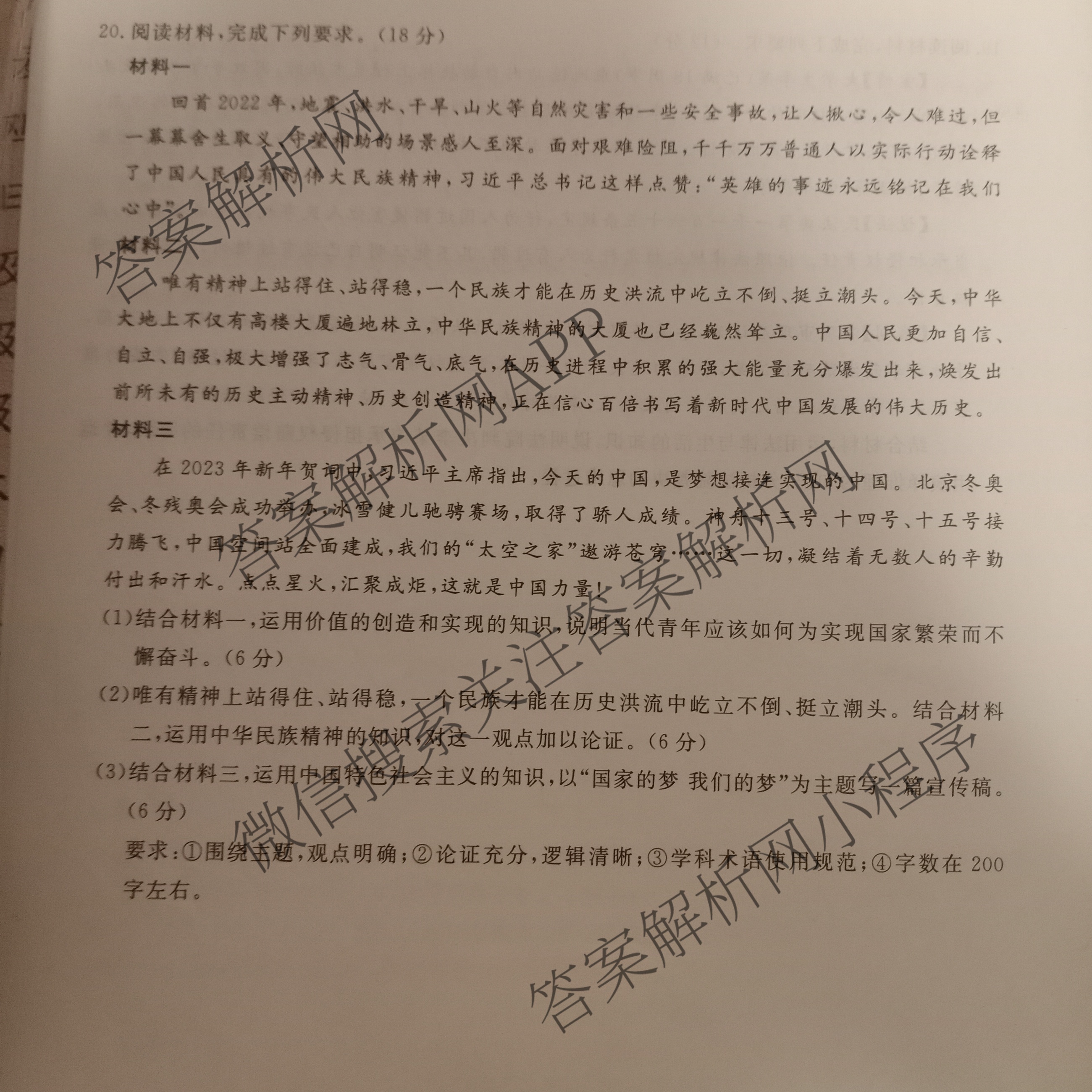 - [衡水名师卷]·2022-2023高考模拟压轴卷 文综(老教材)(一)1答案
