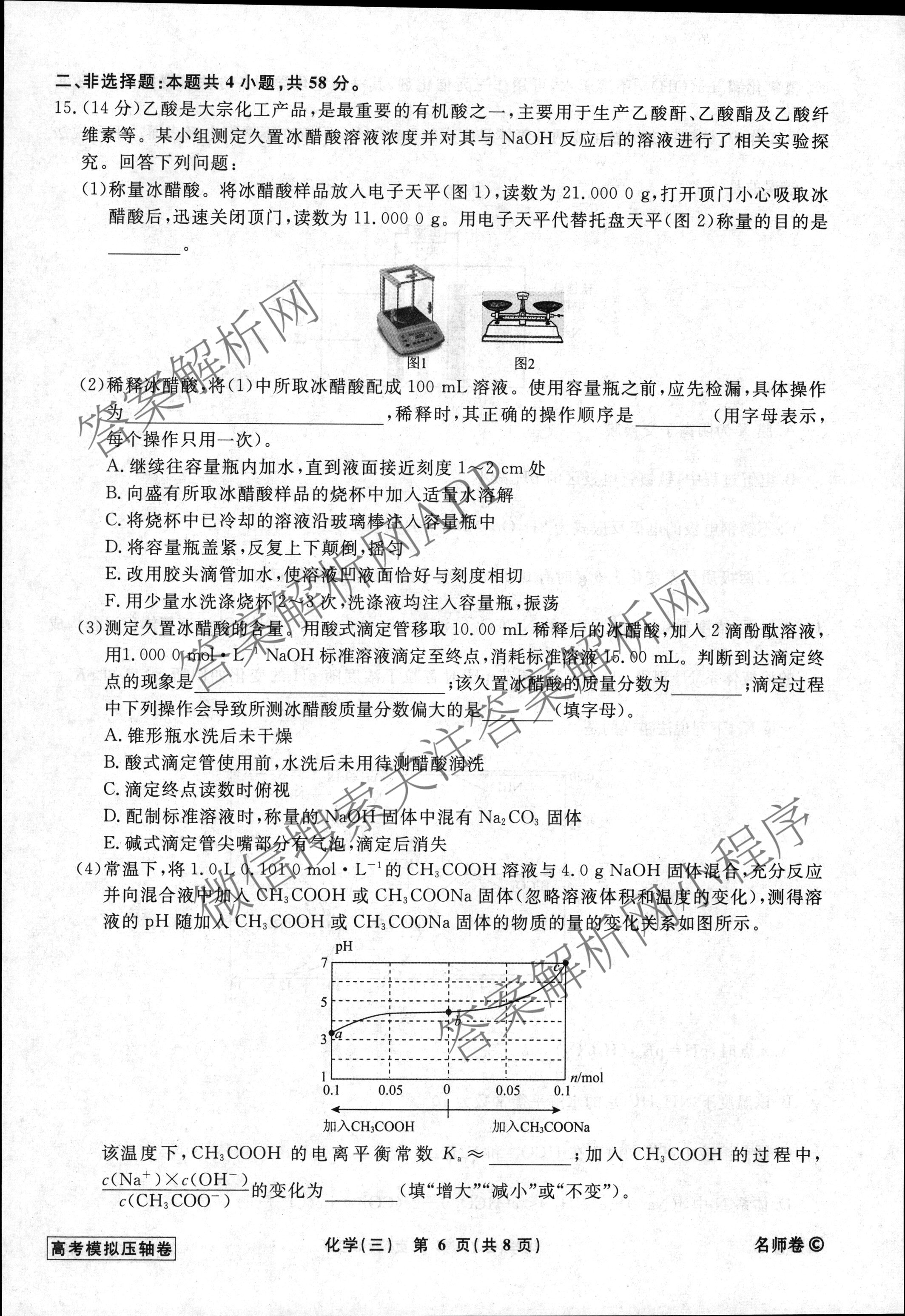 衡水名师卷·2022-2023高考模拟压轴卷 化学(湖南)(三)3试题,目前分科卷答案网已经汇总了衡水名师卷·2022-2023高考模拟压轴卷 化学(湖南)(三)3试题的各科答案和试卷,获取更多衡水名师卷答案解析,请在关注本站。