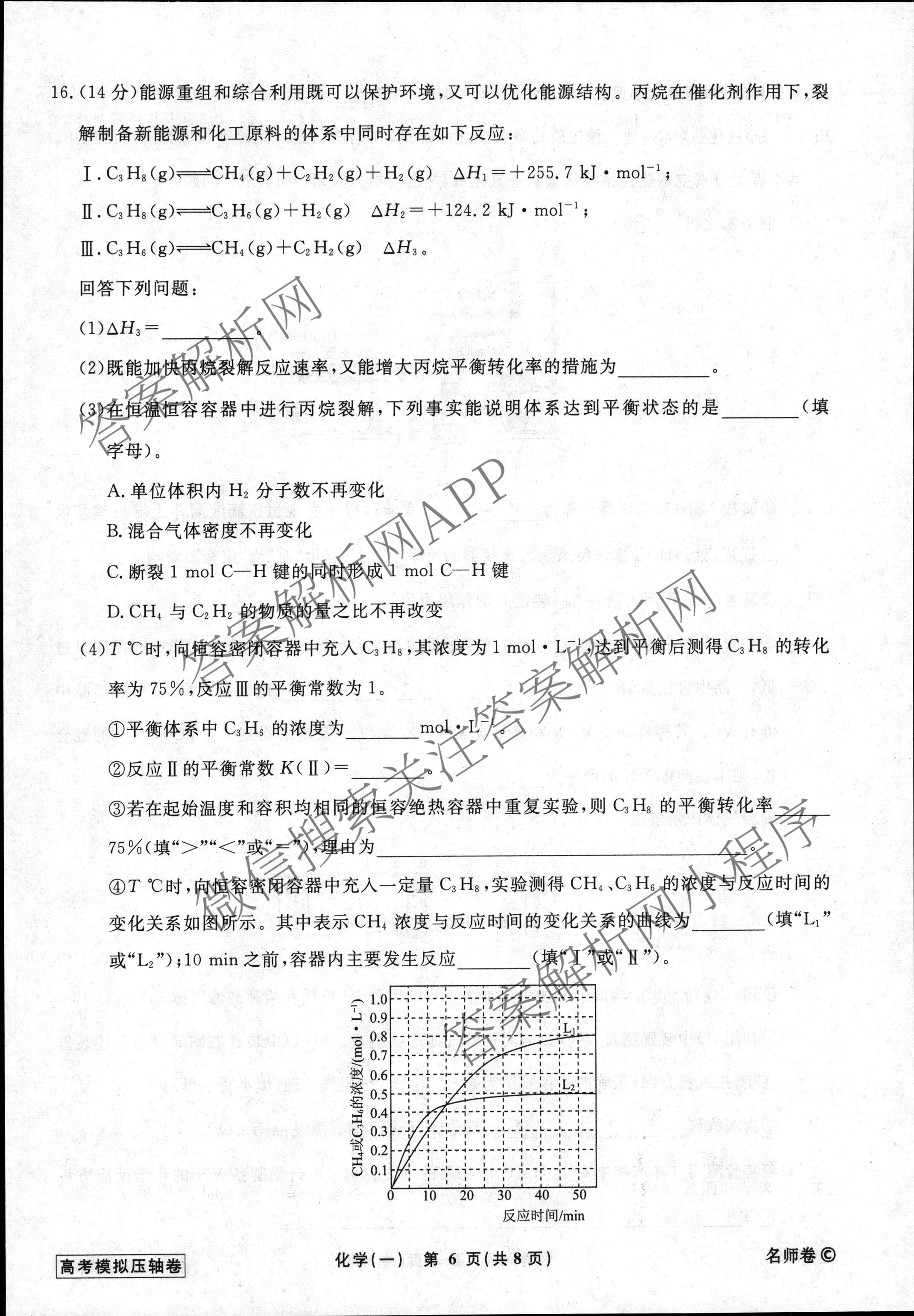 衡水名师卷·2022-2023高考模拟压轴卷 化学(湖南)(一)1试题,目前分科卷答案网已经汇总了衡水名师卷·2022-2023高考模拟压轴卷 化学(湖南)(一)1试题的各科答案和试卷,获取更多衡水名师卷答案解析,请在关注本站。