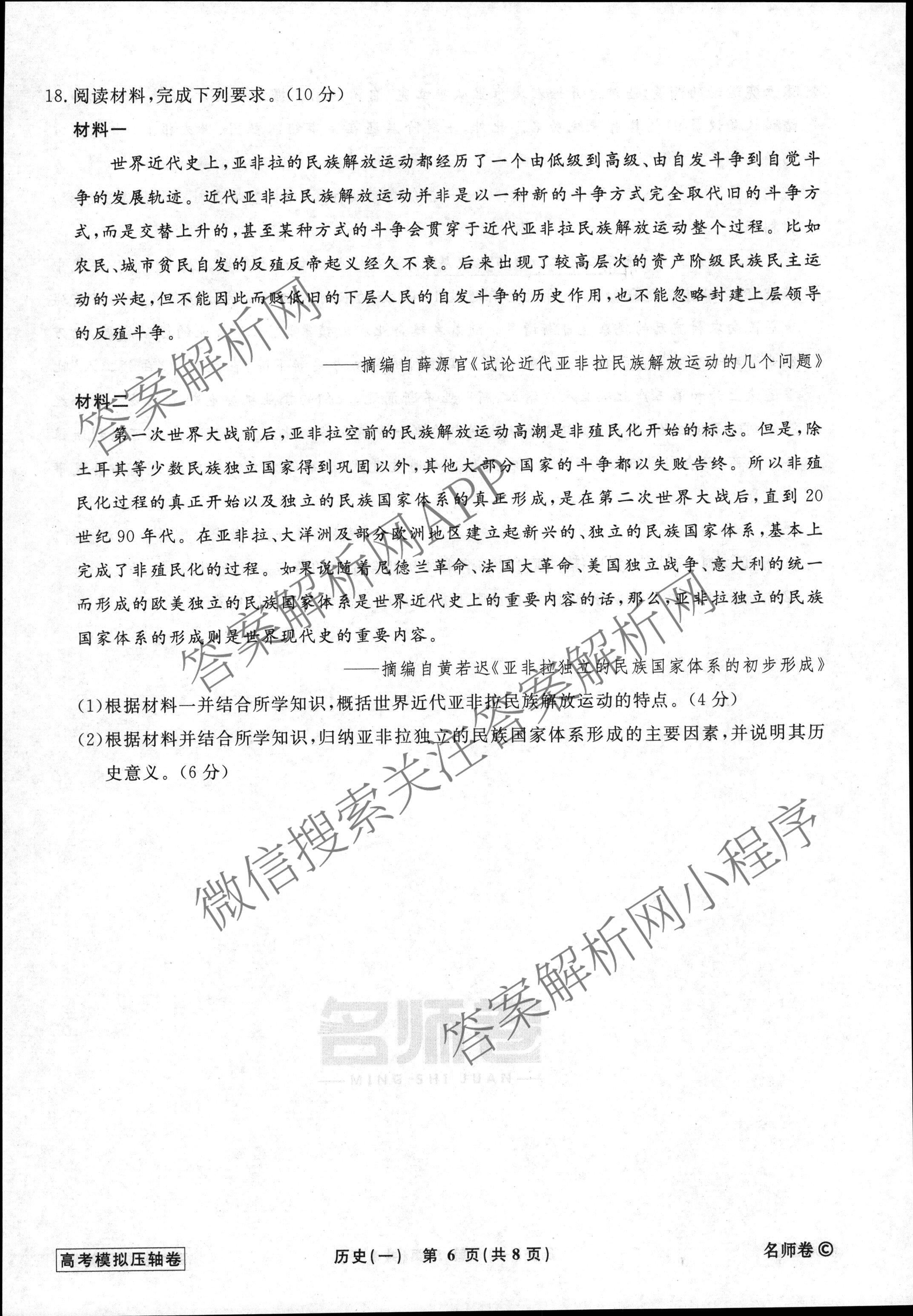 衡水名师卷·2022-2023高考模拟压轴卷 历史(湖南)(一)1试题,目前分科卷答案网已经汇总了衡水名师卷·2022-2023高考模拟压轴卷 历史(湖南)(一)1试题的各科答案和试卷,获取更多衡水名师卷答案解析,请在关注本站。