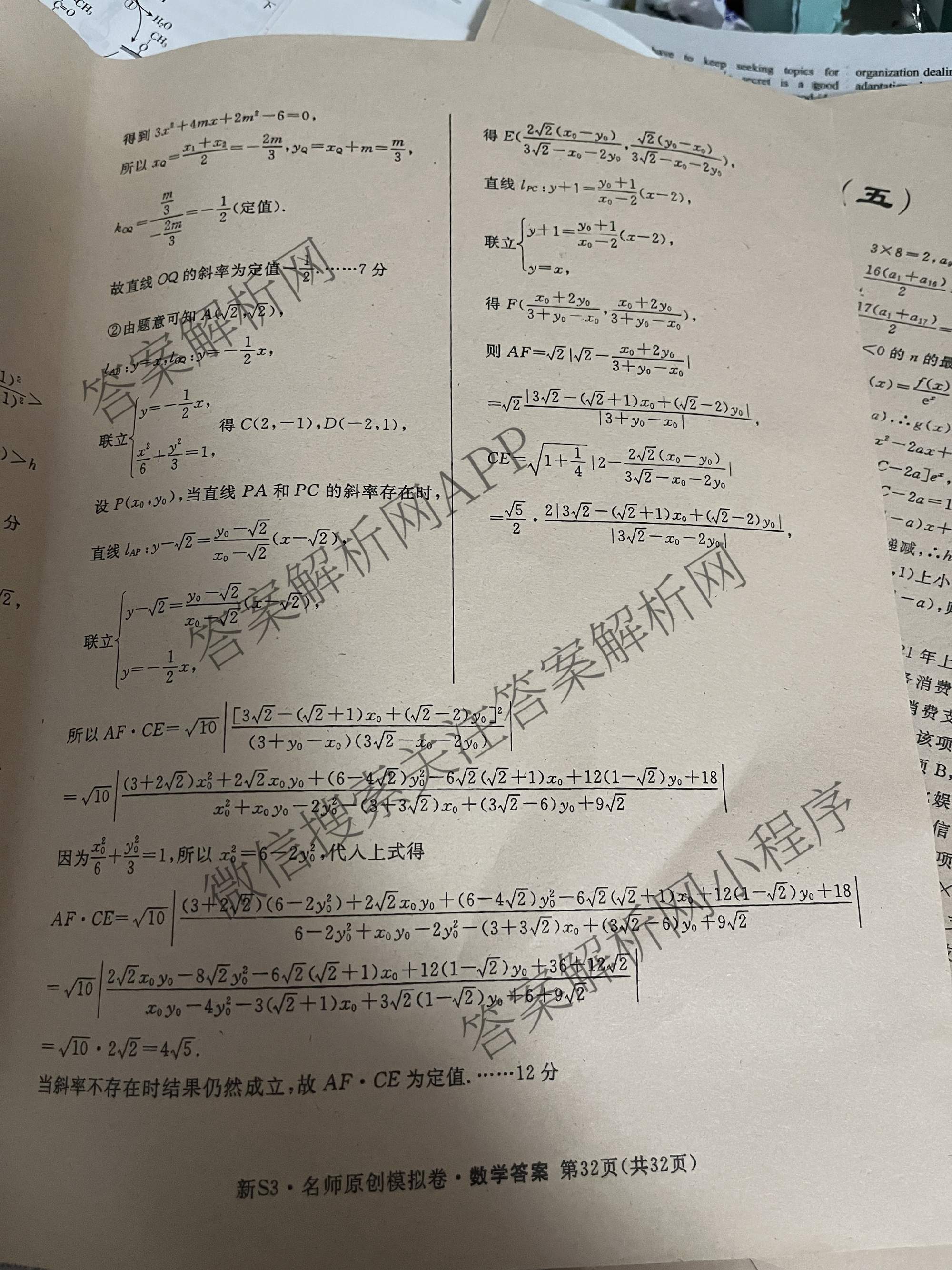 2023届高三总复习·新S3 名师原创模拟数学(六)6答案,目前分科卷答案网已经汇总了2023届高三总复习·新S3 名师原创模拟数学(六)6答案的各科答案和试卷,获取更多高三总复习·名师原创模拟答案解析,请在关注本站。