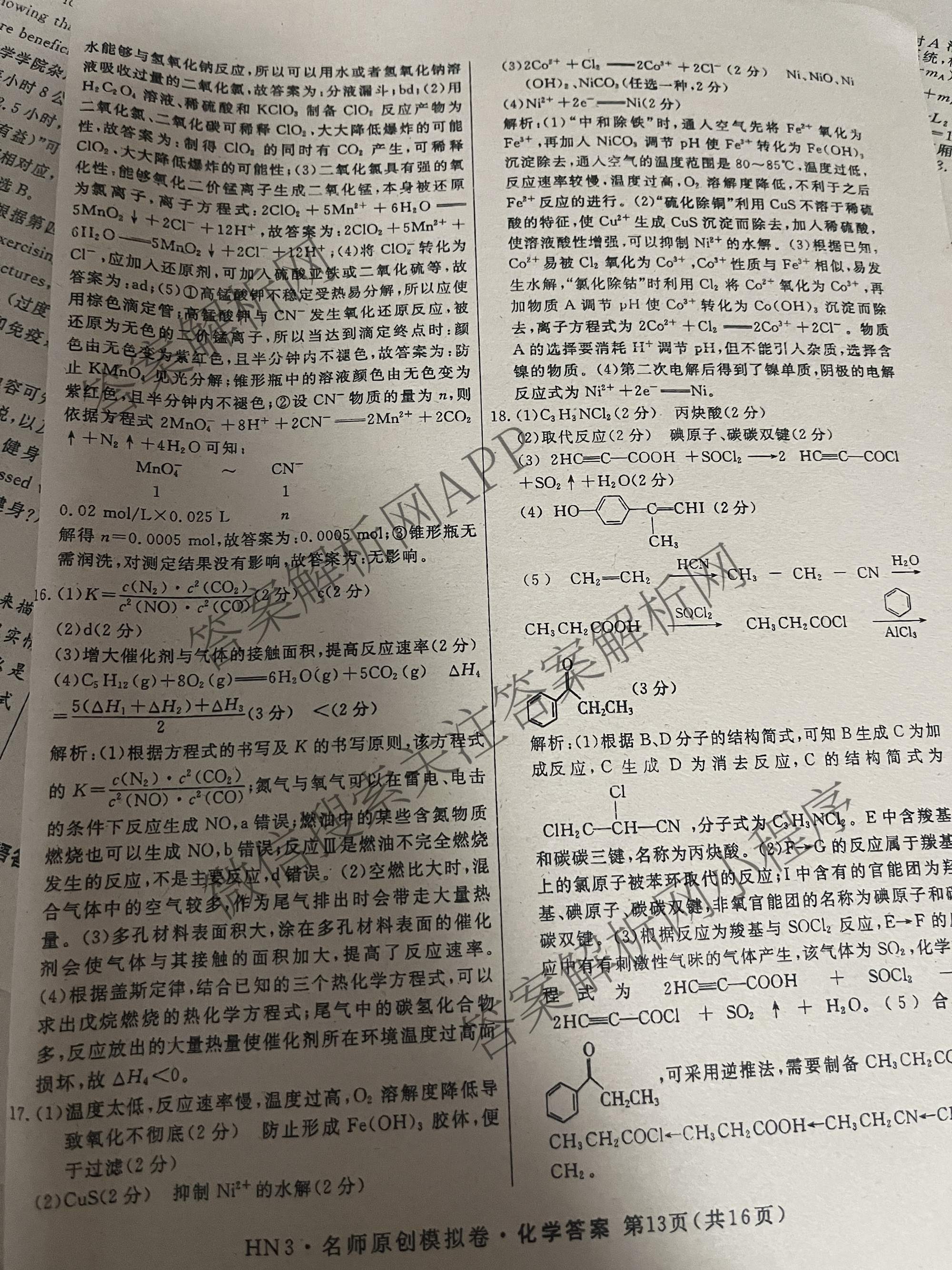 2023届高三总复习·HN3(湖南) 名师原创模拟 化学(五)5答案,目前分科卷答案网已经汇总了2023届高三总复习·HN3(湖南) 名师原创模拟 化学(五)5答案的各科答案和试卷,获取更多高三总复习·名师原创模拟答案解析,请在关注本站。