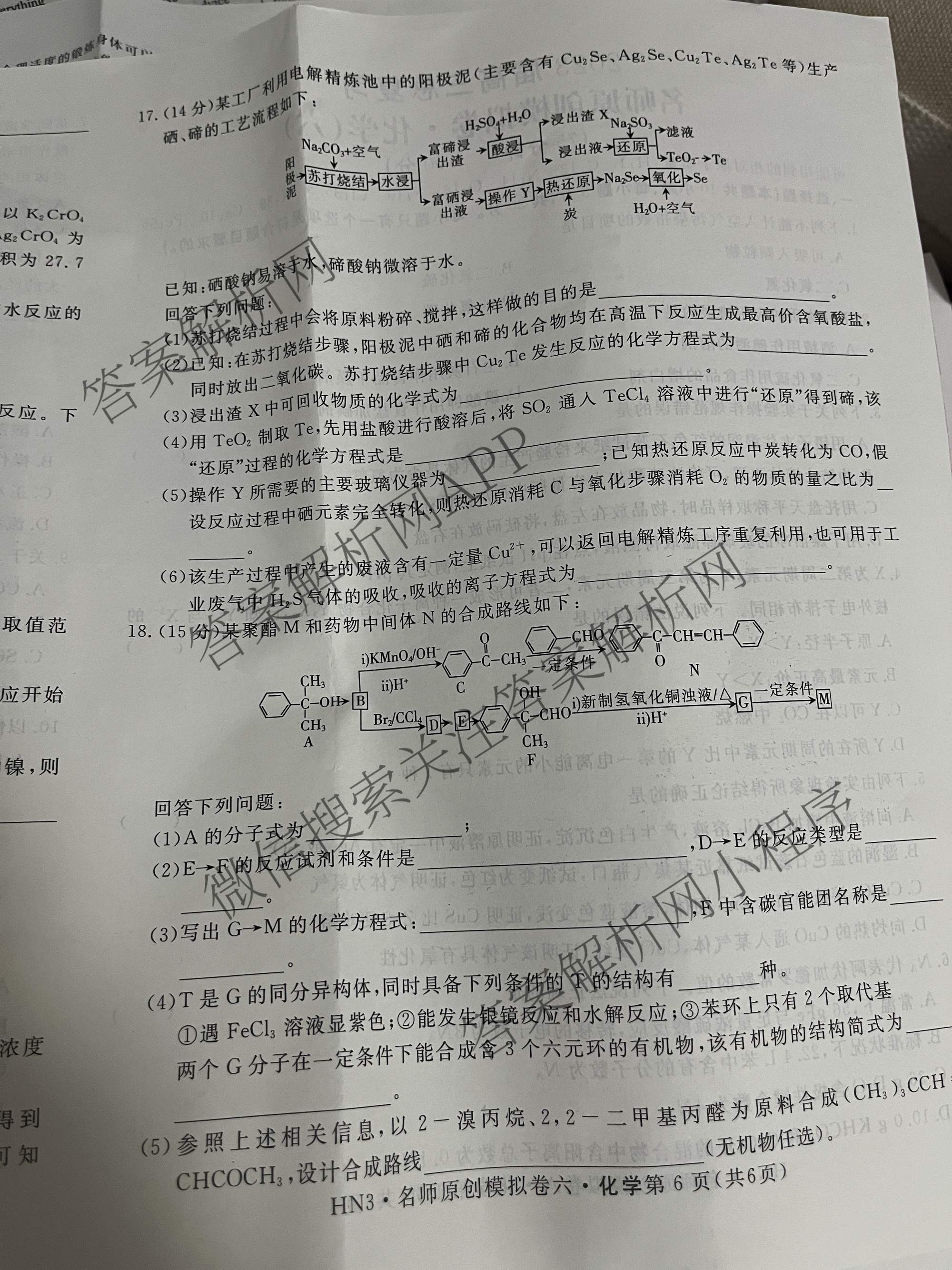 - [高三]2023届总复习HN3(湖南) 名师原创模拟 化学(六)6答案