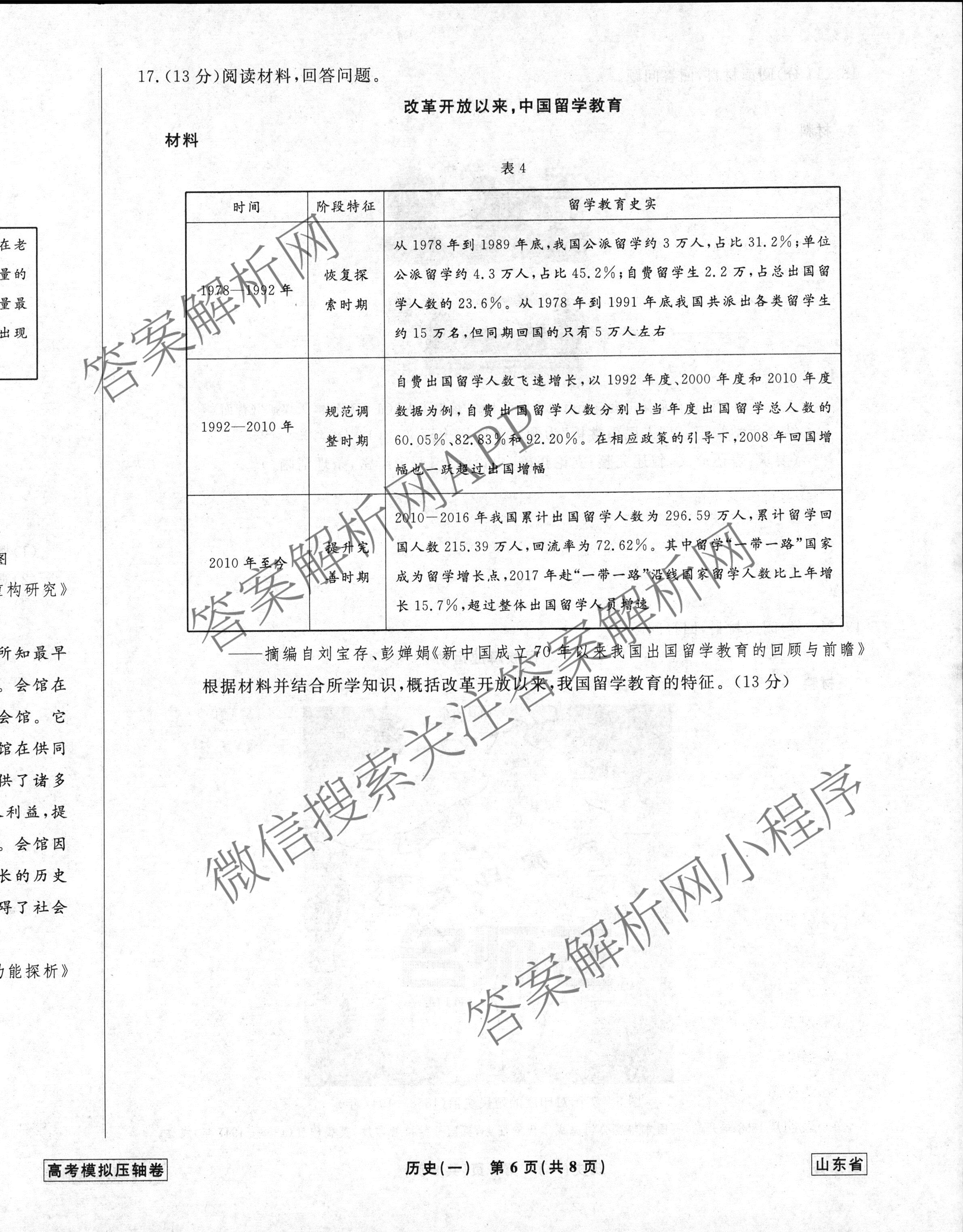 - [衡水名师卷]2022~2023高考模拟压轴卷 历史(山东)(一)1答案