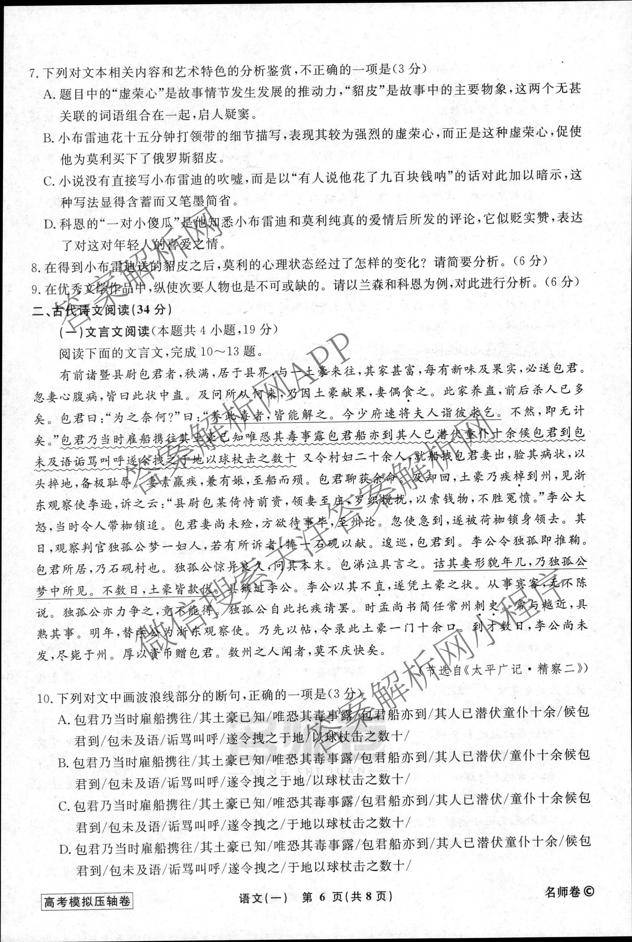 衡水名师卷·2022-2023高考模拟压轴卷 语文(老高考)(一)1试题,目前分科卷答案网已经汇总了衡水名师卷·2022-2023高考模拟压轴卷 语文(老高考)(一)1试题的各科答案和试卷,获取更多衡水名师卷答案解析,请在关注本站。