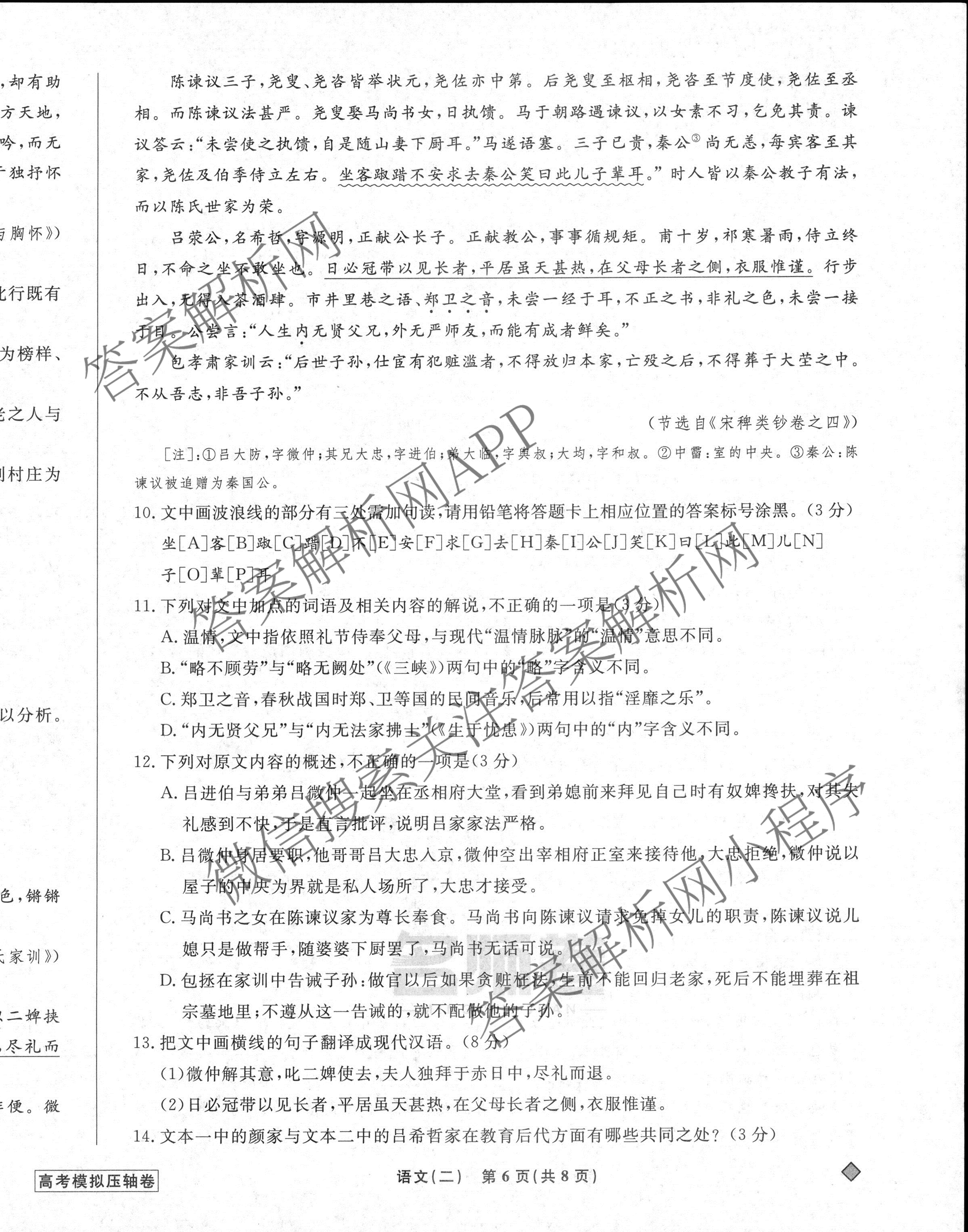 - [高三][衡水名师卷]·2022-2023高考模拟压轴卷 语文(老高考)(二)2答案