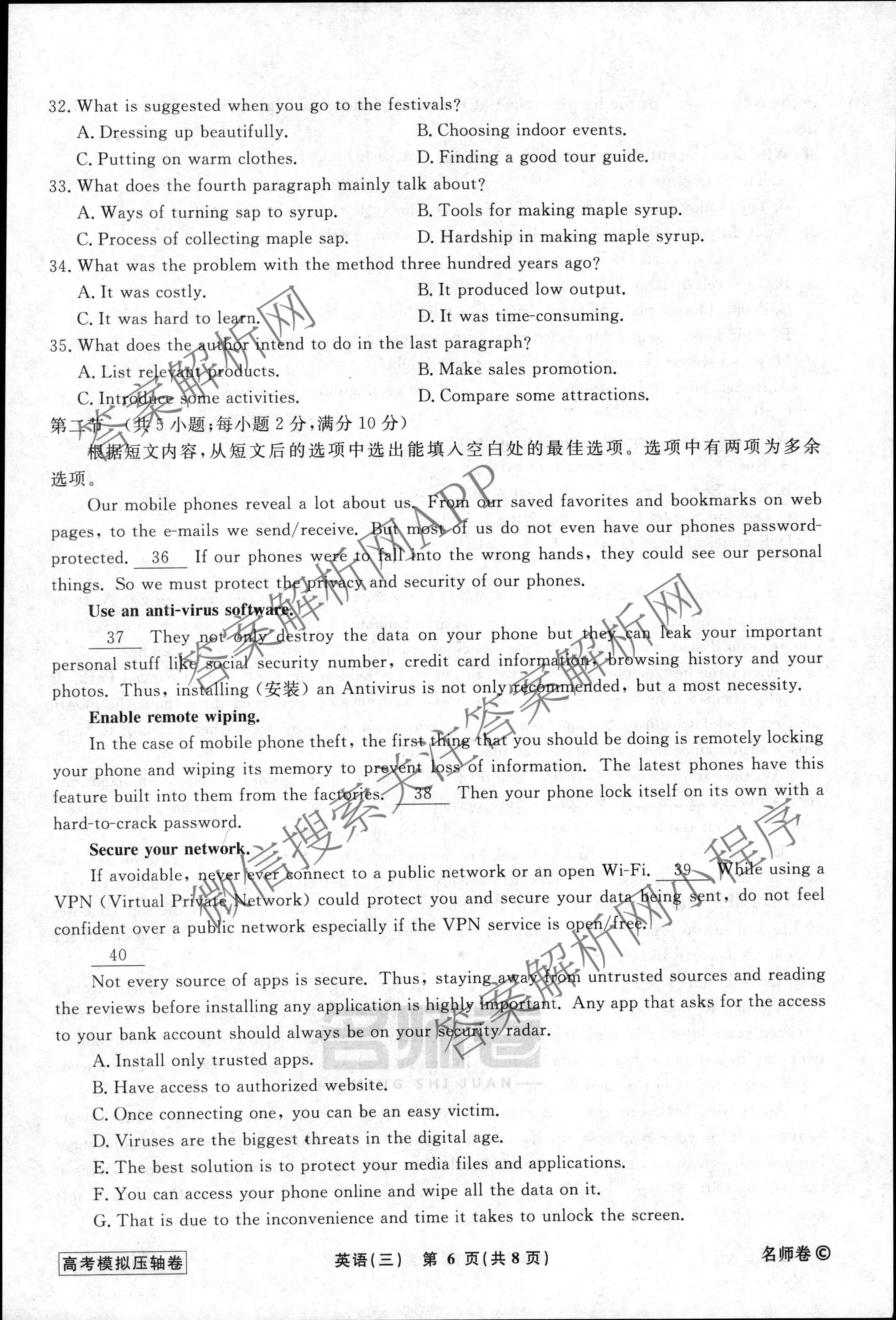 - 2022~2023[高三]衡水名师卷·高考模拟压轴卷 英语(无角标)(三)3试题
